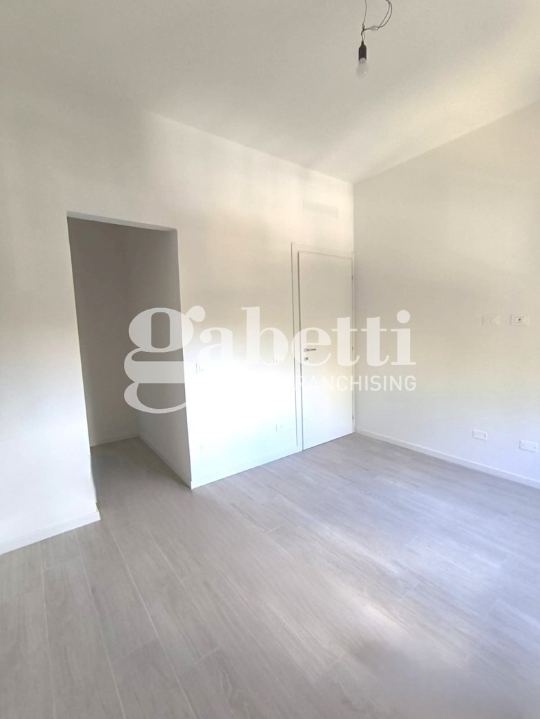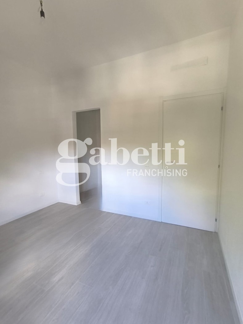 L'appartamento in corso di ristrutturazione composto da ingresso su zona giorno dotata di angolo cottura con accesso alla terrazza, camera matrimoniale con accesso alla veranda tergale oltre servizio.