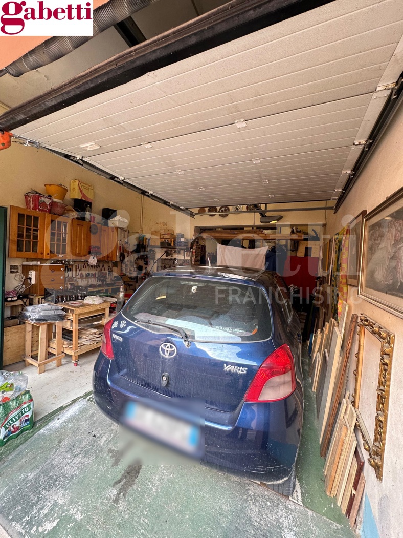 Adiacente all'appartamento ampio garage con bagno di 32 mq anch'esso al piano terra.