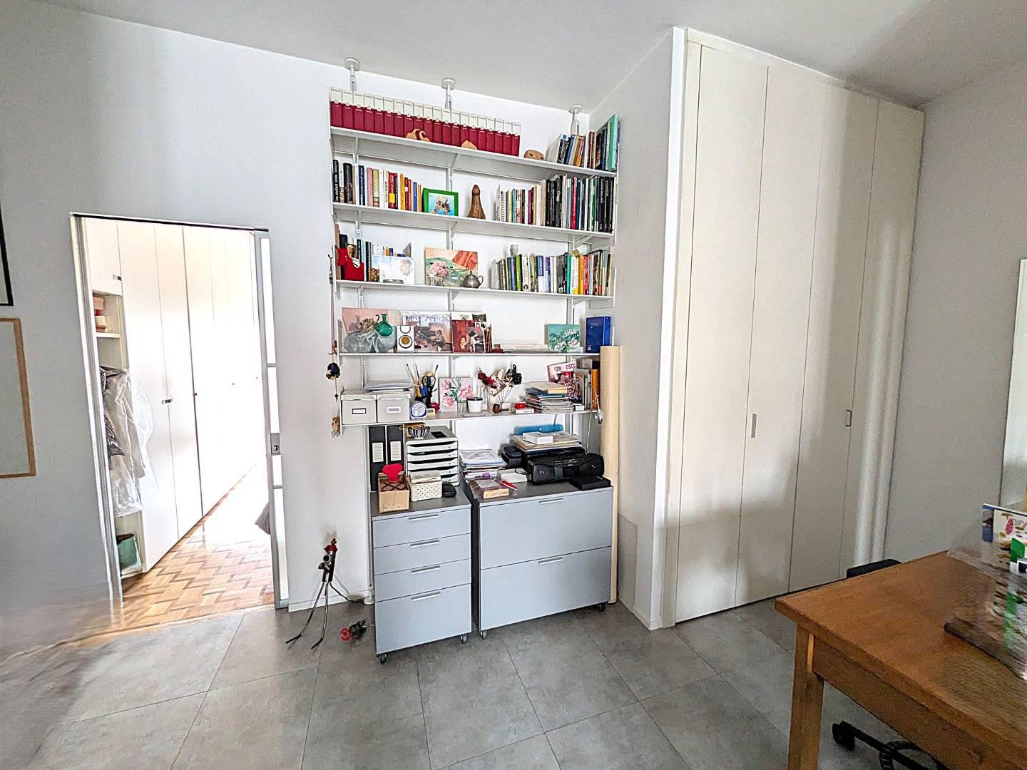lampia camera da letto, dotata di un ampia vetrata, separata da una libreria che permette di ricavare comodamente una zona studio.