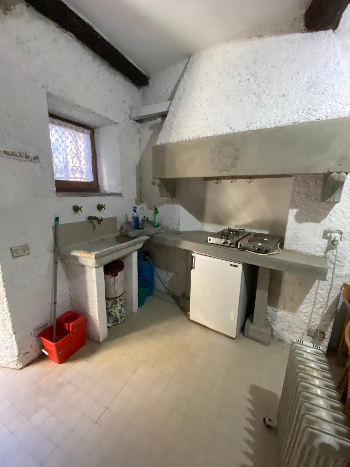 L'ingresso è indipendente direttamente dal borgo, dal quale si accede al soggiorno /cucina dove troviamo l'antico lavandino in marmo e la cappa del camino con fregi architettonici, una parete in sasso caratterizza tutta la zona giorno che termina con un ripostiglio, al piano superiore troviamo un disimpegno dal quale si accede al bagno con vasca ed alla camera matrimoniale con finestra sul borgo. Contatta l'inserzionista