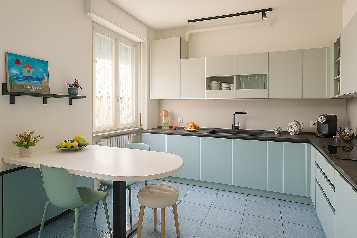 L'appartamento composta da un ampio soggiorno, una spaziosa cucina abitabile separata, due camere da letto di grandi dimensioni e un comodo bagno.