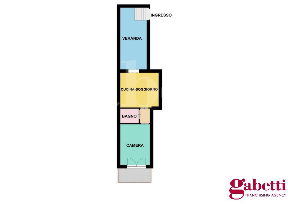 L'appartamento di dimensioni contenute e composto da Cucina, bagno, camera da letto e verandina.