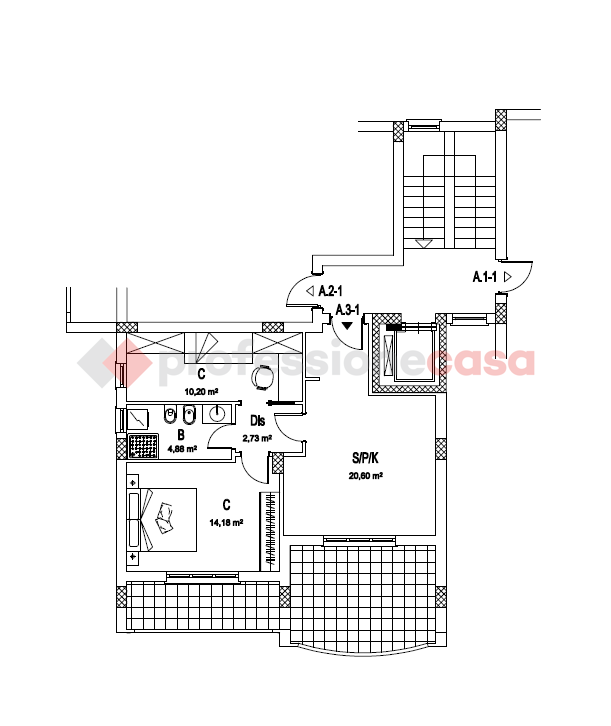 La tipologia proposta di appartamento in questa fascia di prezzo : - Bilocale con ampia cucina/sala , camera da letto, bagno, cameretta oltre terrazzino di 14 mq . e balcone, incluso comodo box. auto e cantina.