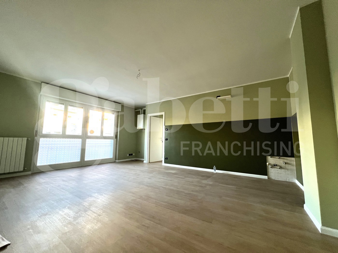 La soluzione si compone di un luminoso soggiorno con cucina a vista, disimpegno, bagno finestrato e camera matrimoniale.