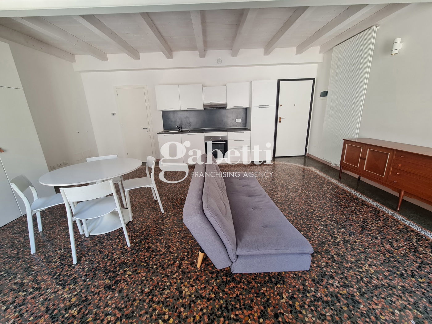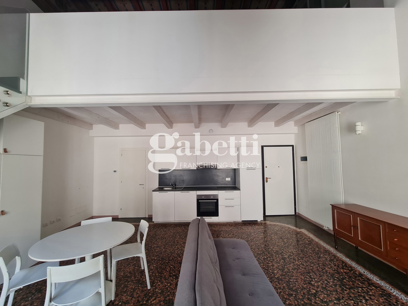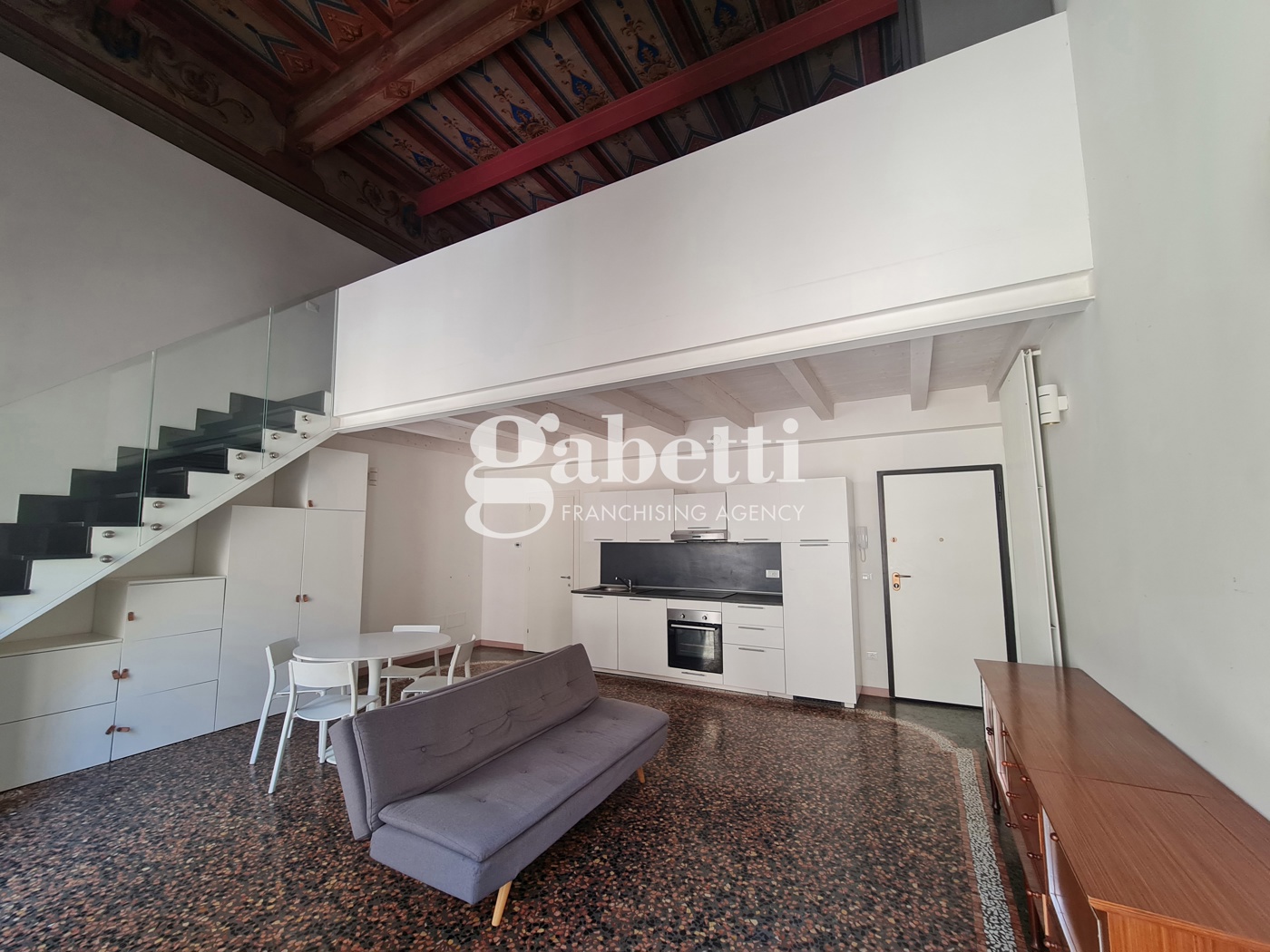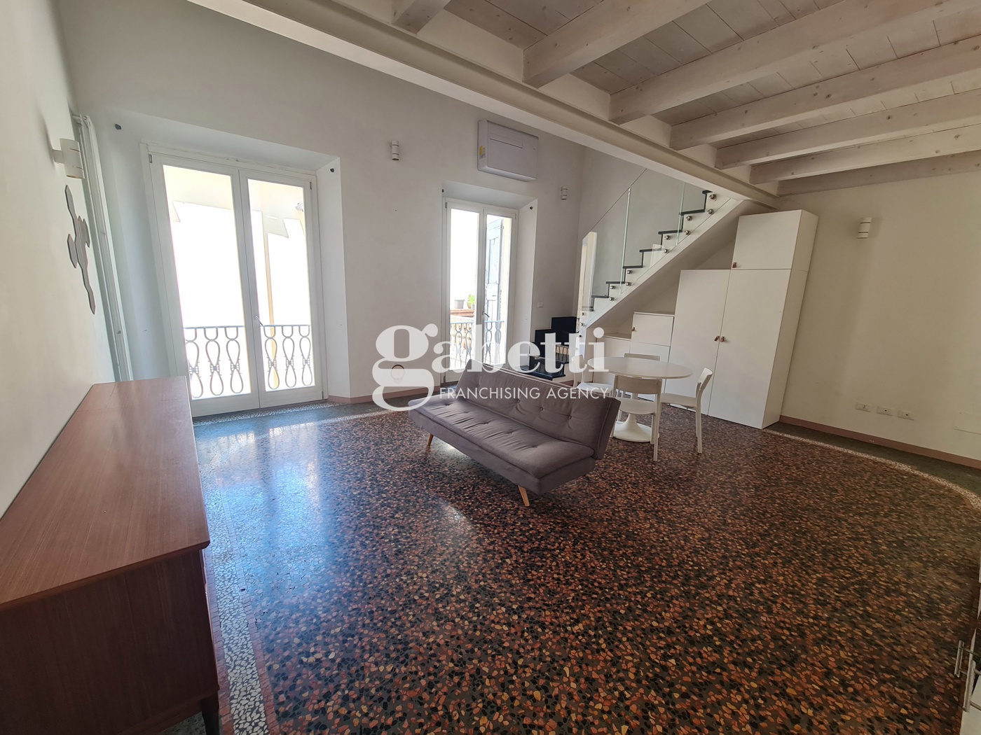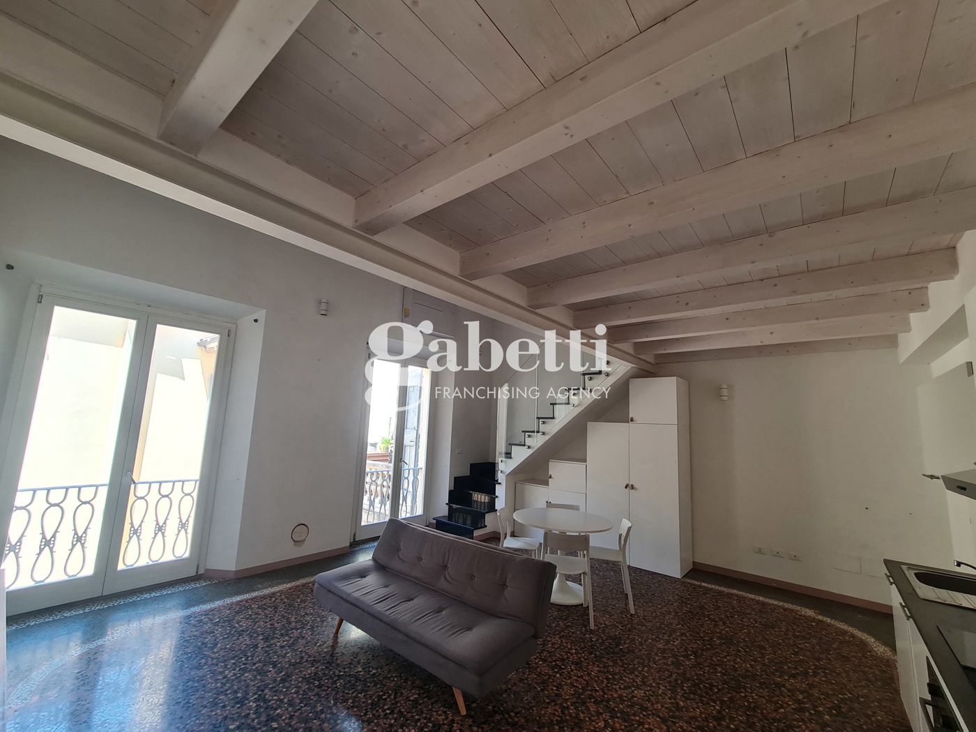 In palazzo storico totalmente ristrutturato da 10 anni circa e sottoposto al vincolo della Sovraintendenza dei Beni Culturali, appartamento posto al primo piano, servito da ascensore, con affacci interni, rappresentato da una ampia zona giorno con angolo cucina, un bagno, una scala che porta a un soppalco dove posta la camera da letto.