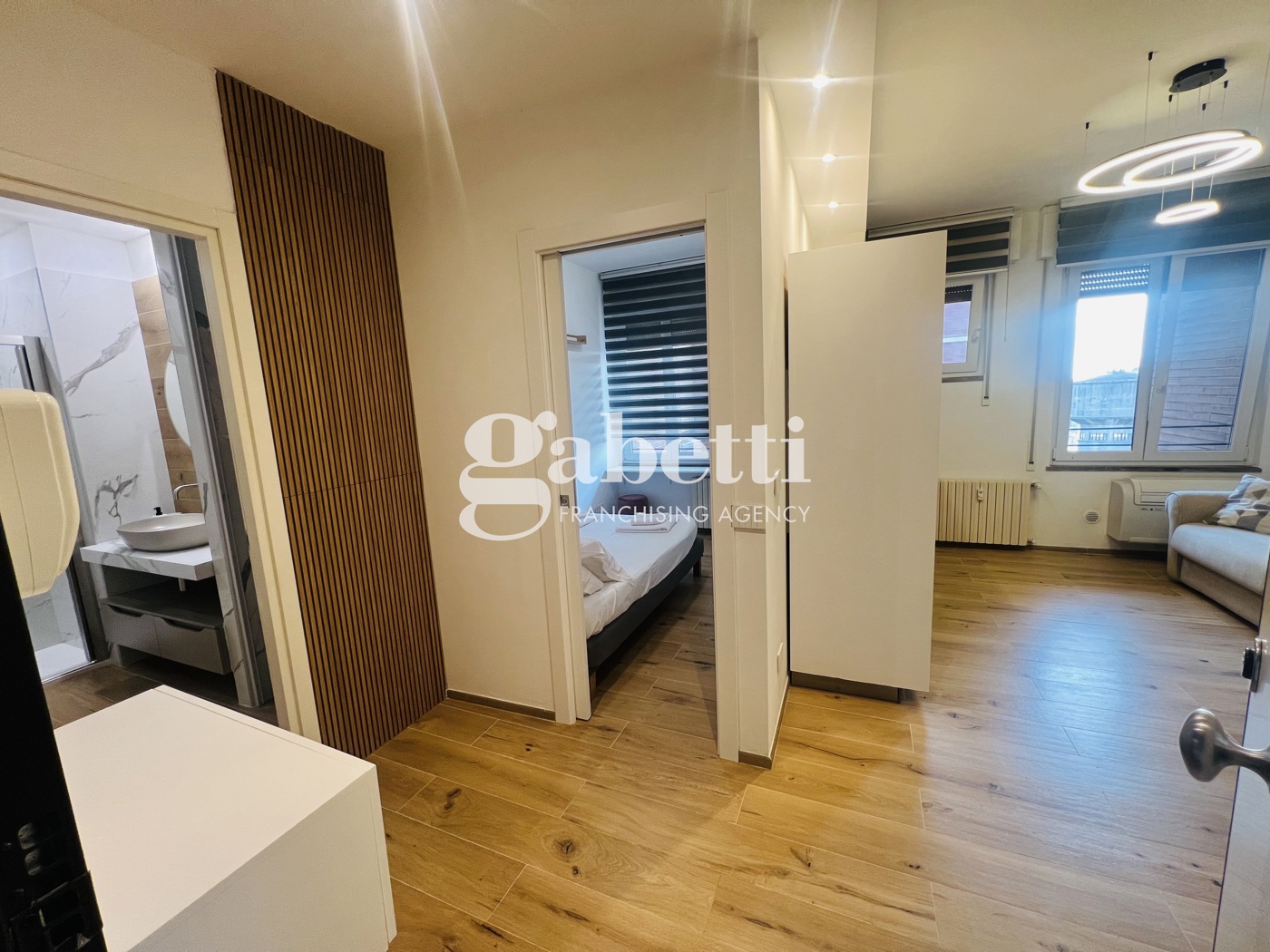 L'appartamento, ristrutturato a luglio 2024, totalmente arredato, cos composto: ingresso su disimpegno, sala con cucina a vista, camera da letto, bagno con ripostiglio lavanderia.