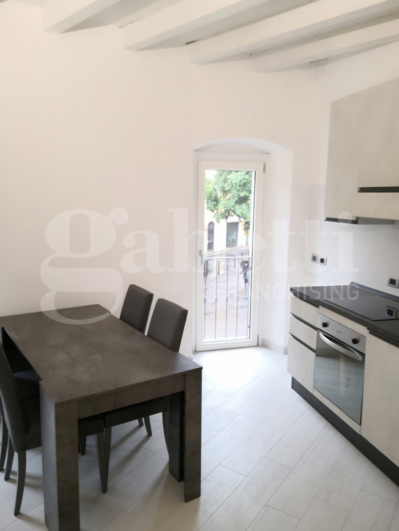 L'appartamento stato oggetto di una completa e attenta ristrutturazione nel 2021, che ne ha esaltato il carattere: splendide travi a vista, che aggiungono calore e un tocco di autenticit all'ambiente, e un elegante parquet, posato nella camera da letto e nello studio.