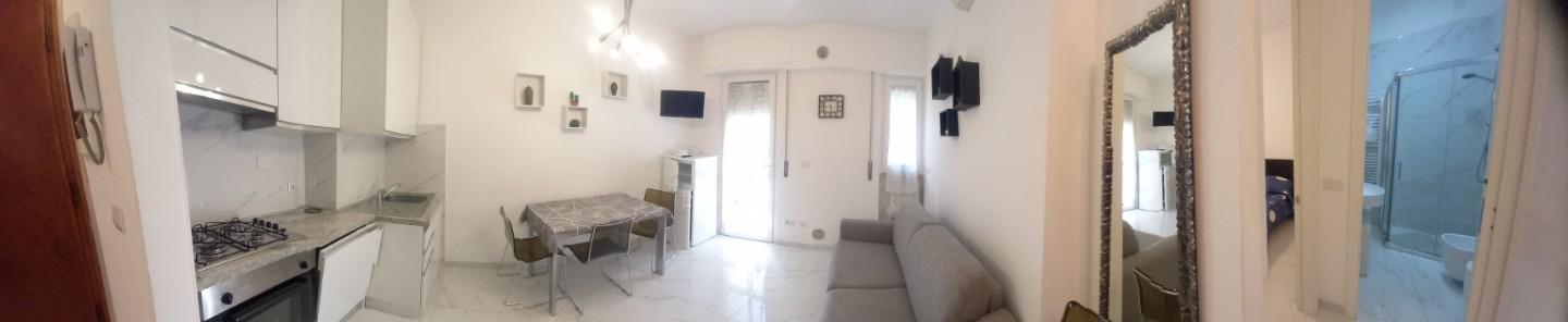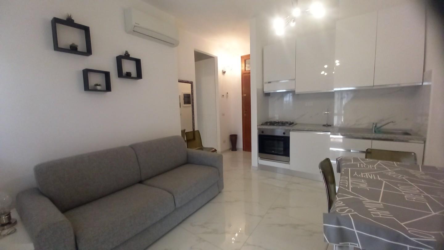 ***.*******.** bilocale tutto nuovo - appartamento bilocale posto a piano terreno rialzato di un condominio a circa 400 mt. di distanza dal mare. si compone di soggiorno con angolo cottura con piccolo balcone, camera matrimoniale e bagno con doccia; il tutto completamente ristrutturato a nuovo con colori bianco e grigio, molto luminoso.