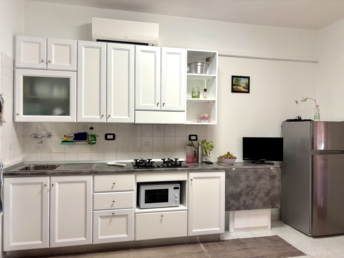 L'immobile, completo di tende da sole e condizionatore, si compone di luminoso soggiorno con angolo cottura, ampio terrazzo, camera da letto e bagno con box doccia.