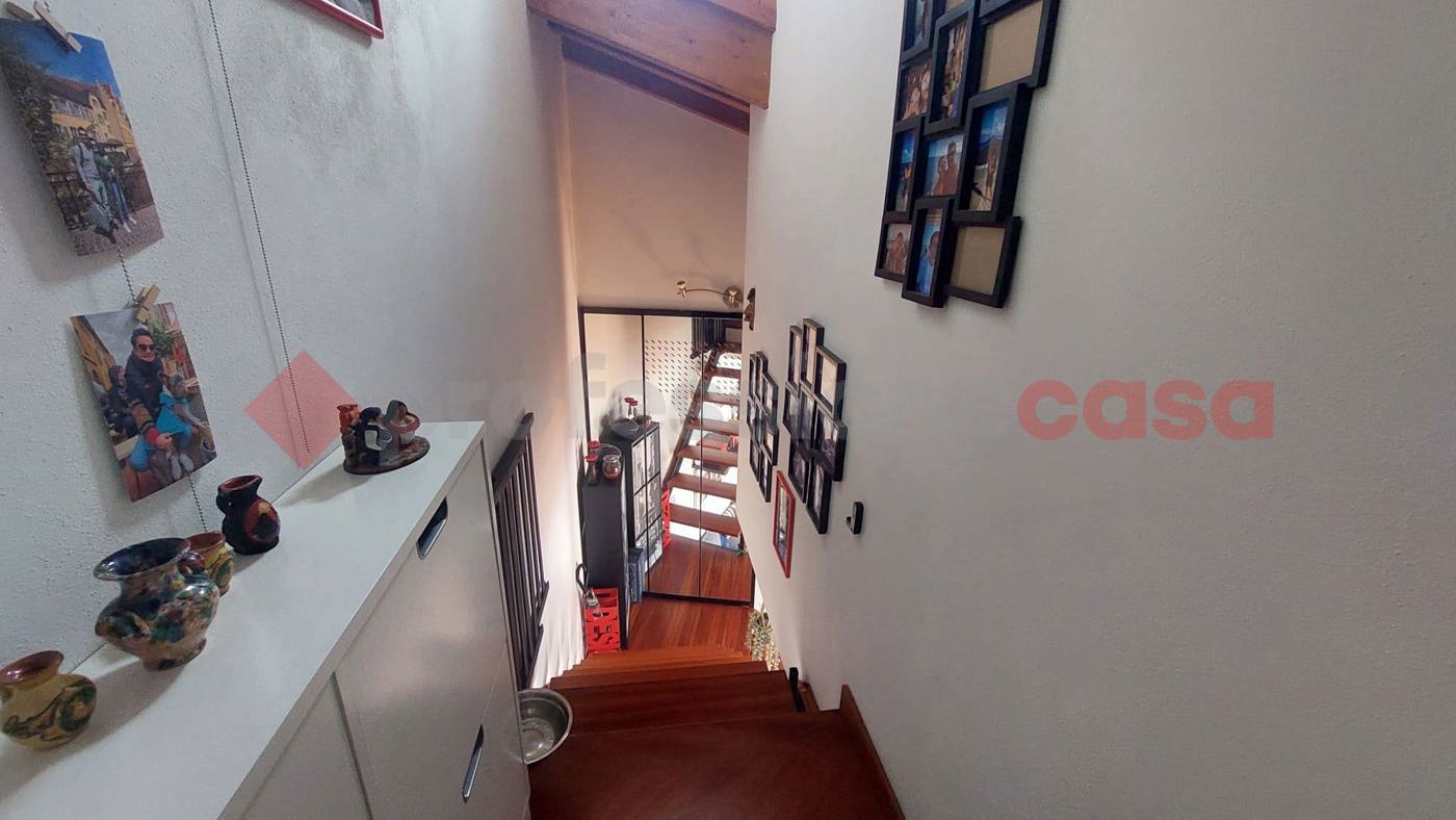 Una scala lineare in legno conduce al piano superiore mansardato, totalmente abitabile, dove si trovano la camera matrimoniale e il bagno.