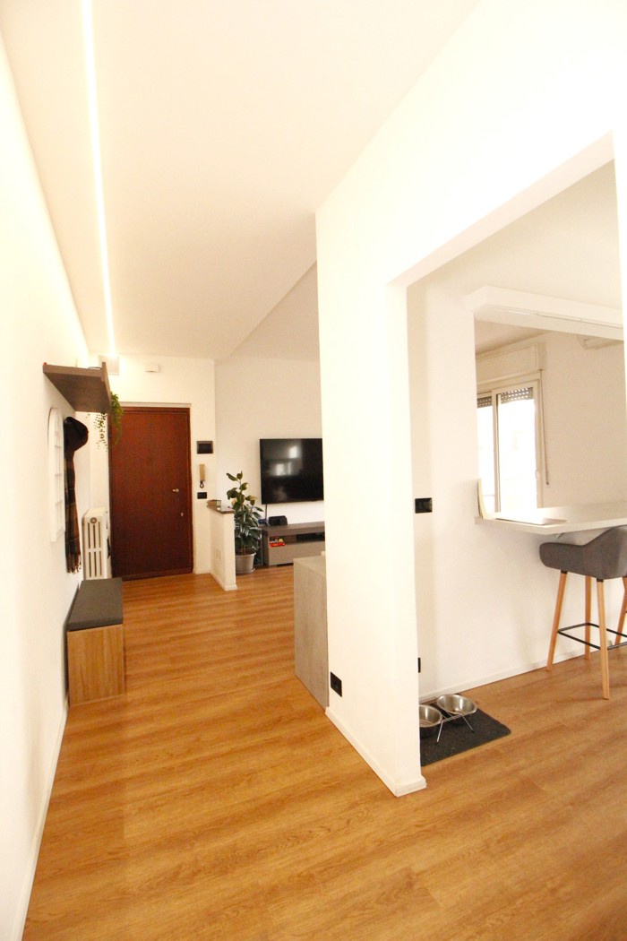 Lappartamento conquista fin da subito per gli spazi generosi e ben distribuiti, sia nella zona giorno che nella zona notte.