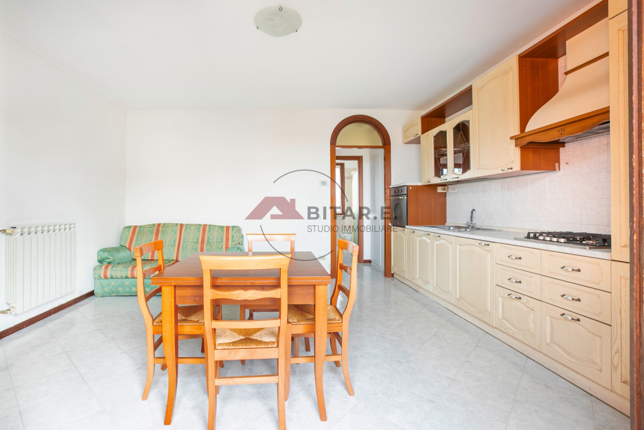 L'appartamento è composto da: *zona giorno con cucina a vista, ben distribuita e con accesso al balcone con affaccio esterno *disimpegno con armadio guardaroba *bagno finestrato con doccia *camera matrimoniale La lavatrice è collocata in cucina.