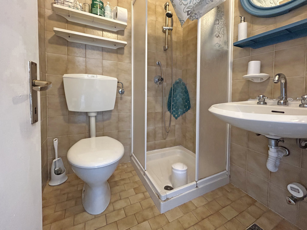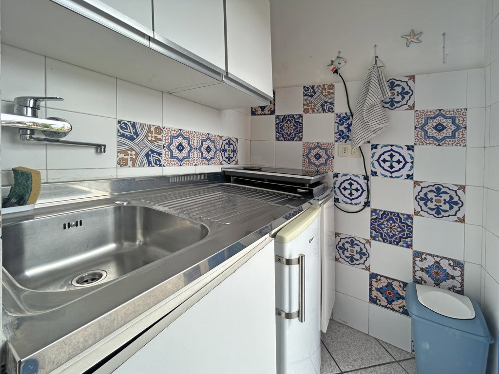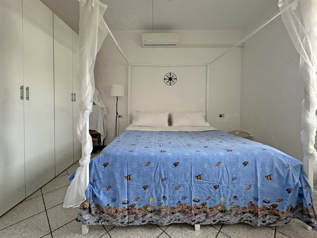 Composto da ingresso sul soggiorno con affaccio sul primo terrazzo parzialmente coperto, cucinotto con affaccio sul secondo terrazzo, camera matrimoniale e bagno con box doccia.
