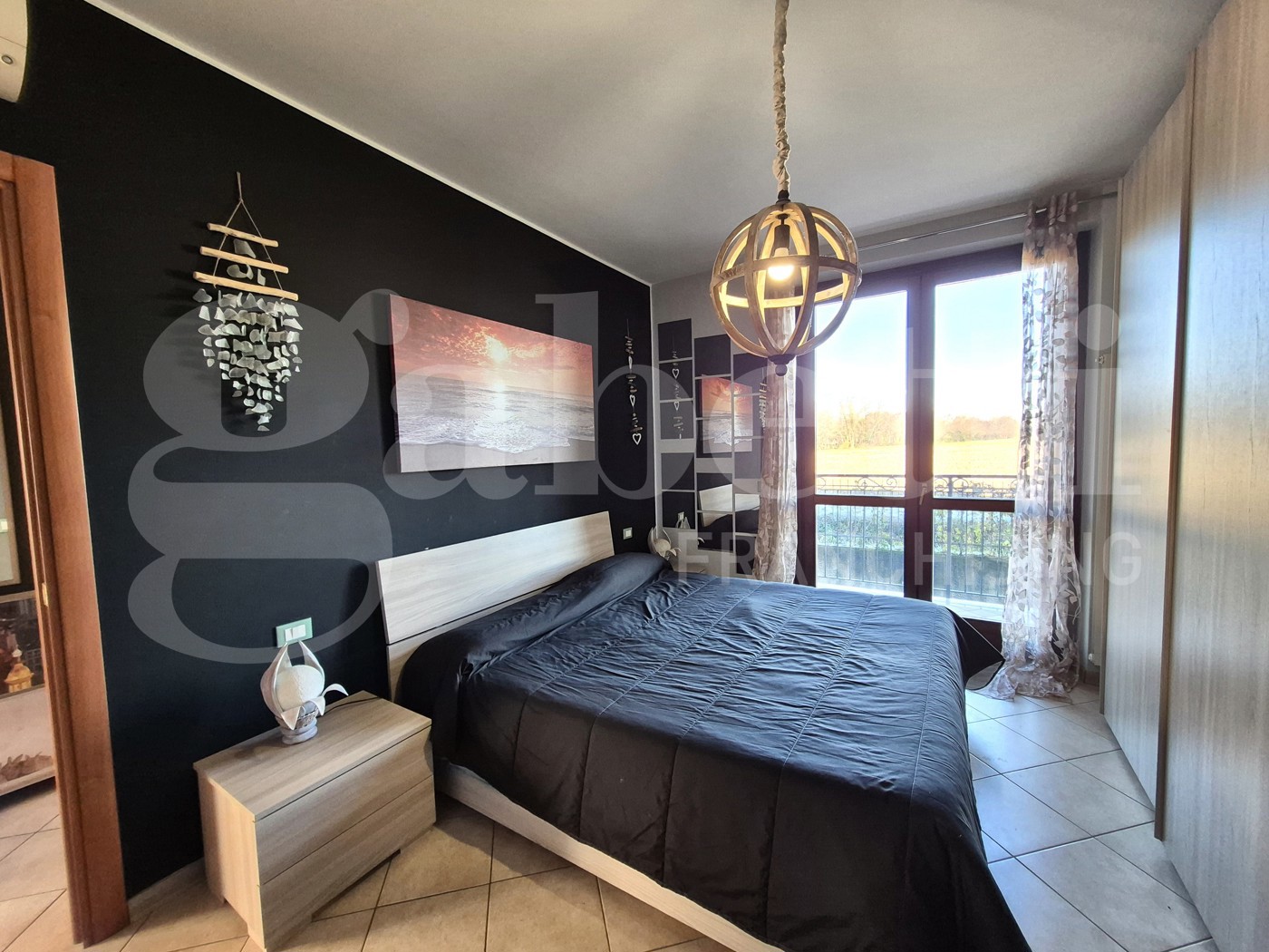 Un comodo disimpegno conduce alla zona notte, dove troviamo un bagno con vasca e una spaziosa camera matrimoniale dotata di balcone con affaccio sulla tranquilla campagna retrostante, perfetto per chi cerca privacy e vista aperta.