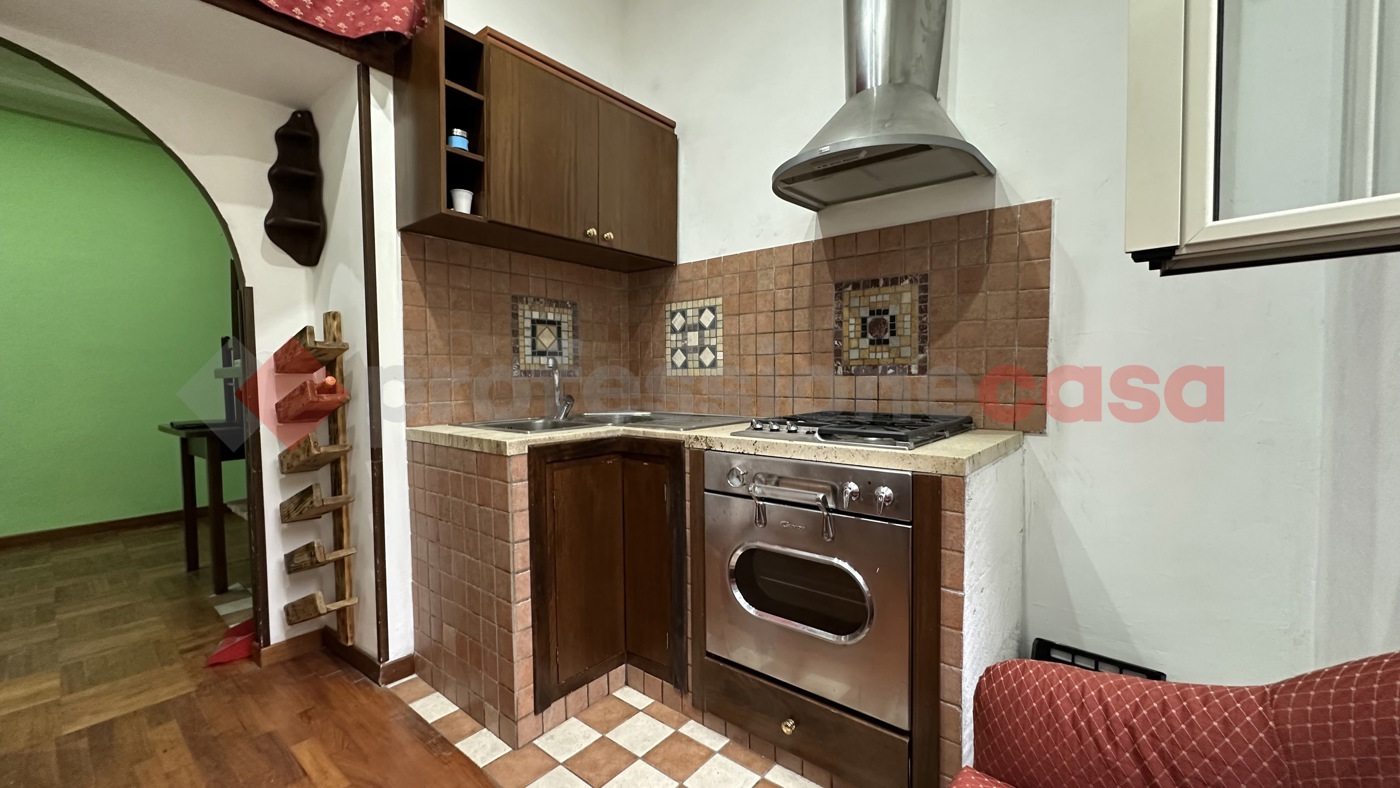 Limmobile composto da soggiorno con camino funzionante, cucina finestrata con cucina in muratura e ripiani incassati, bagno con vasca e camera da letto.