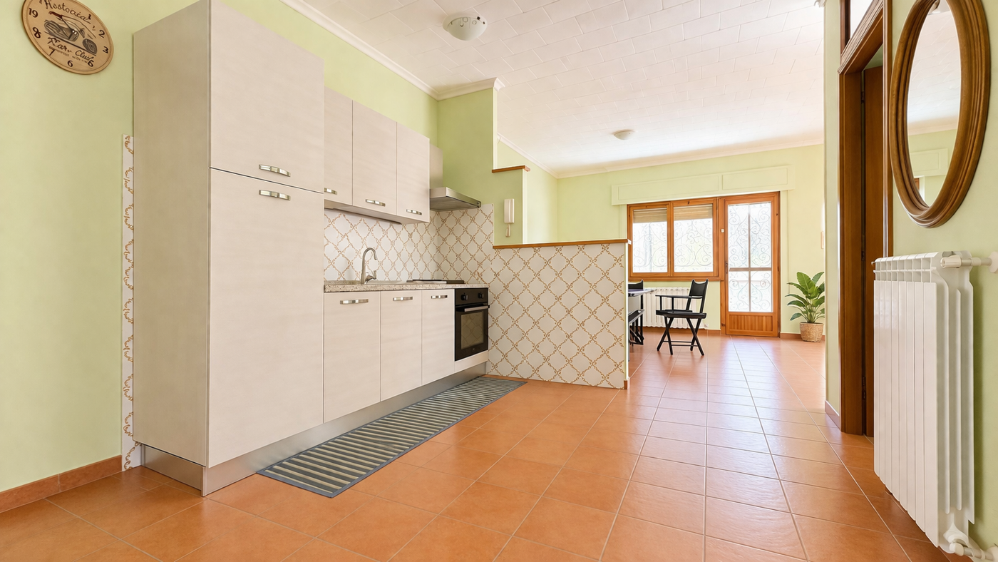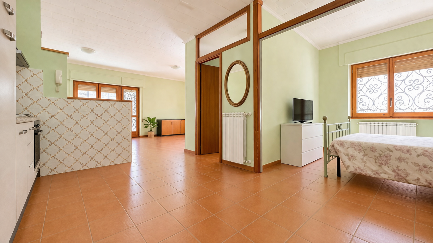 Grazie alla metratura, il soggiorno offre la possibilit di realizzare una seconda camera, rendendo la soluzione adatta anche a nuclei familiari o ad uso investimento.