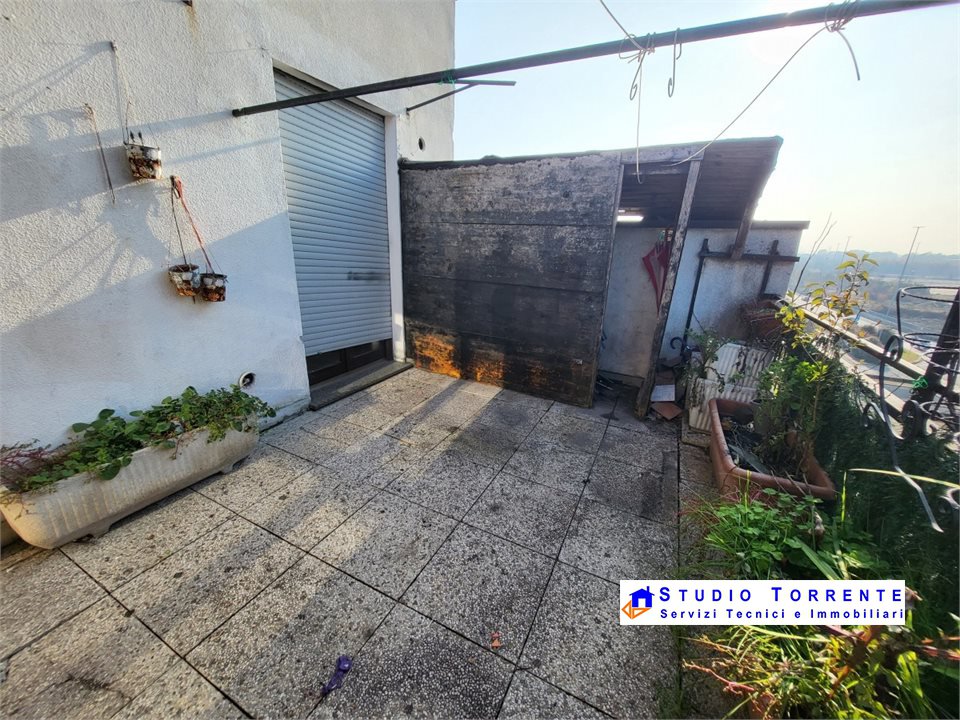 L'appartamento è composto da ingresso sulla cucina abitabile con accesso al terrazzo verandato, disimpegno, ripostiglio, bagno e camera matrimoniale con accesso al terrazzo all'aperto.