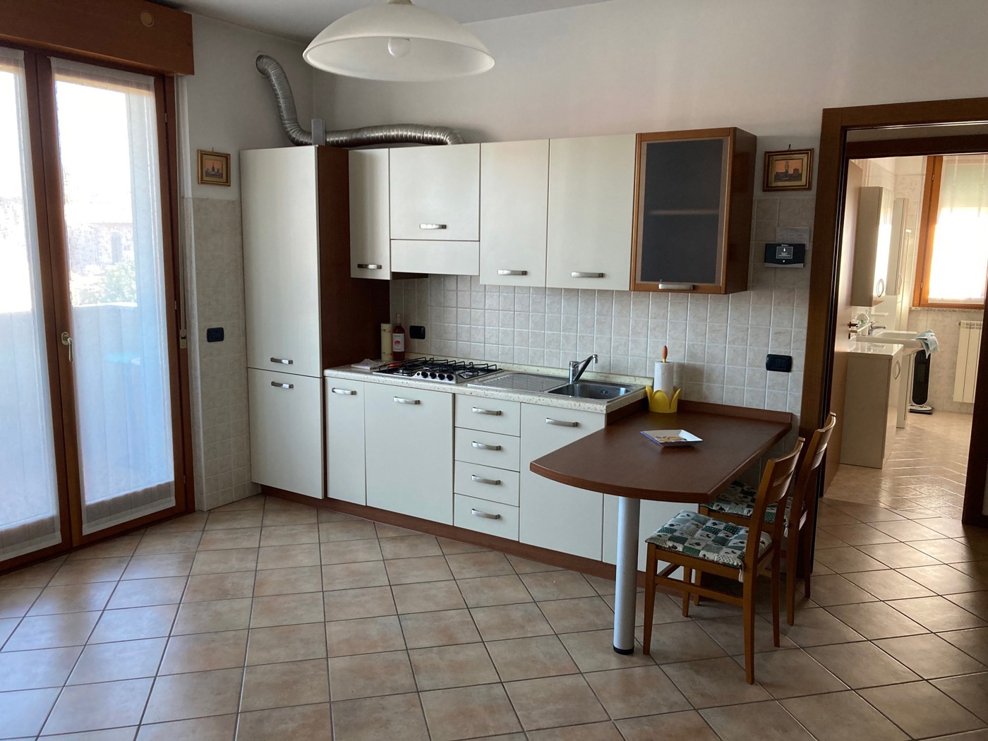 L'immobile cos composto: ingresso in zona giorno con cucina a vista, ambiente servito da ampia porta finestra che accede al terrazzino e da ulteriore finestra che rende l'ambiente molto luminoso.