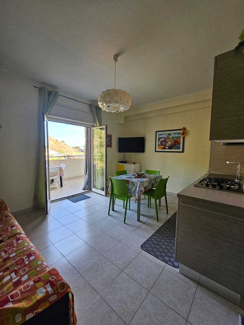 Letojanni -via Monte Bianco , a 500 metri dal mare ,in vendita appartamento al secondo piano con ascensore .L'appartamento all'interno composto da ingresso ,pranzo-soggiorno con cucina a vista con affaccio su terrazzino a livello, camera da letto, bagno e balcone verandato.