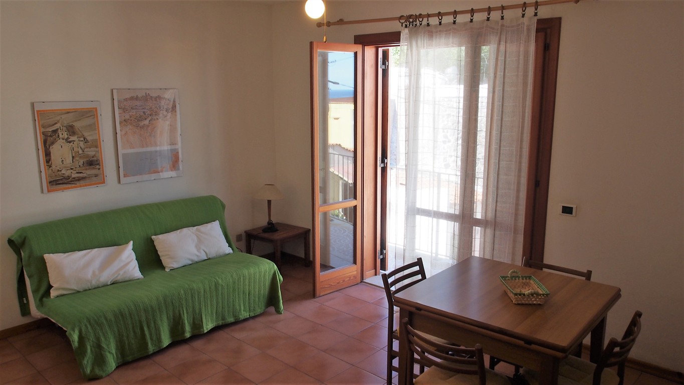 I bivani da 60 mq sono composti da soggiorno cucina con divano letto matrimoniale e balcone, camera da letto matrimoniale e wc doccia.