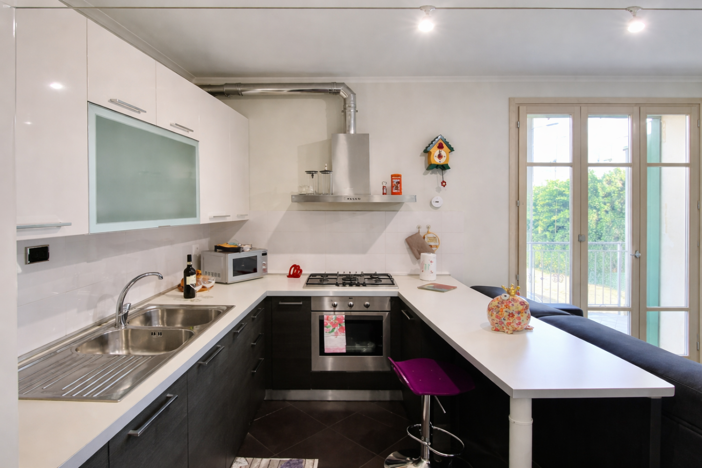 Lappartamento si distingue per gli ambienti luminosi e ben distribuiti: ampia zona giorno open space con cucina moderna a vista e penisola, soggiorno accogliente e splendida porta finestra che dona grande luminosità naturale agli spazi.