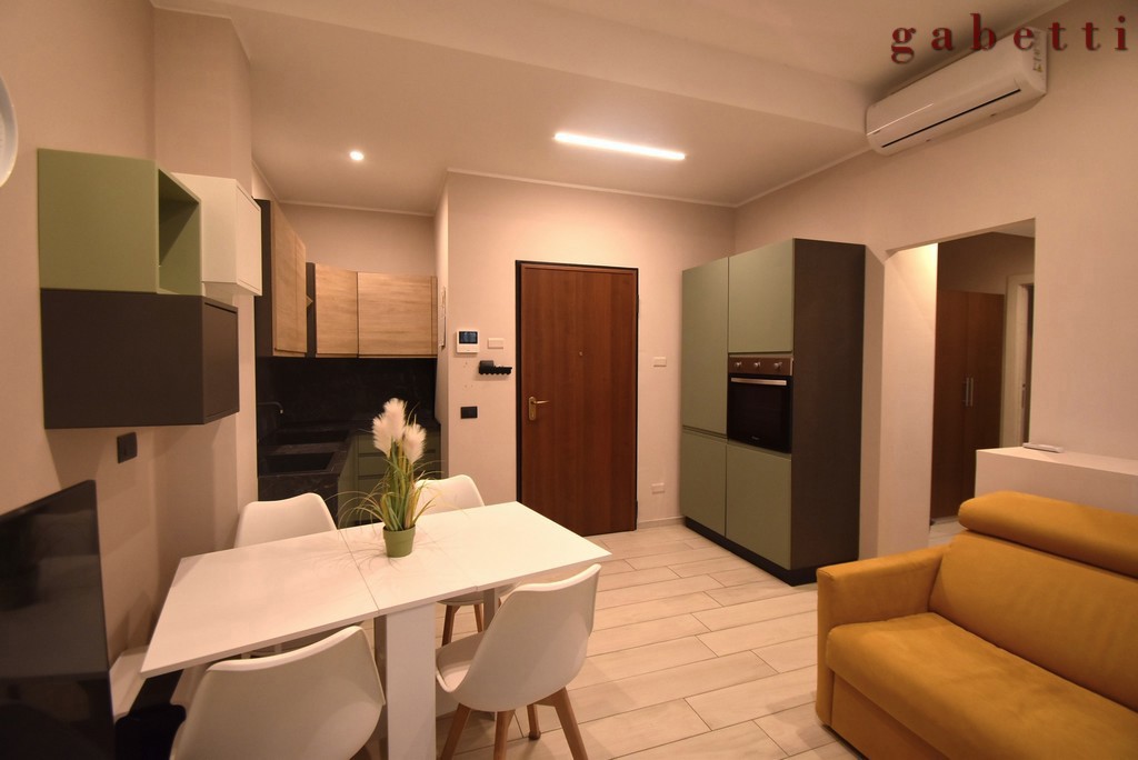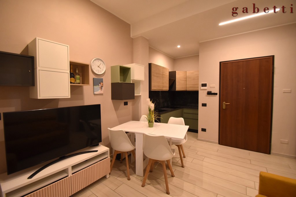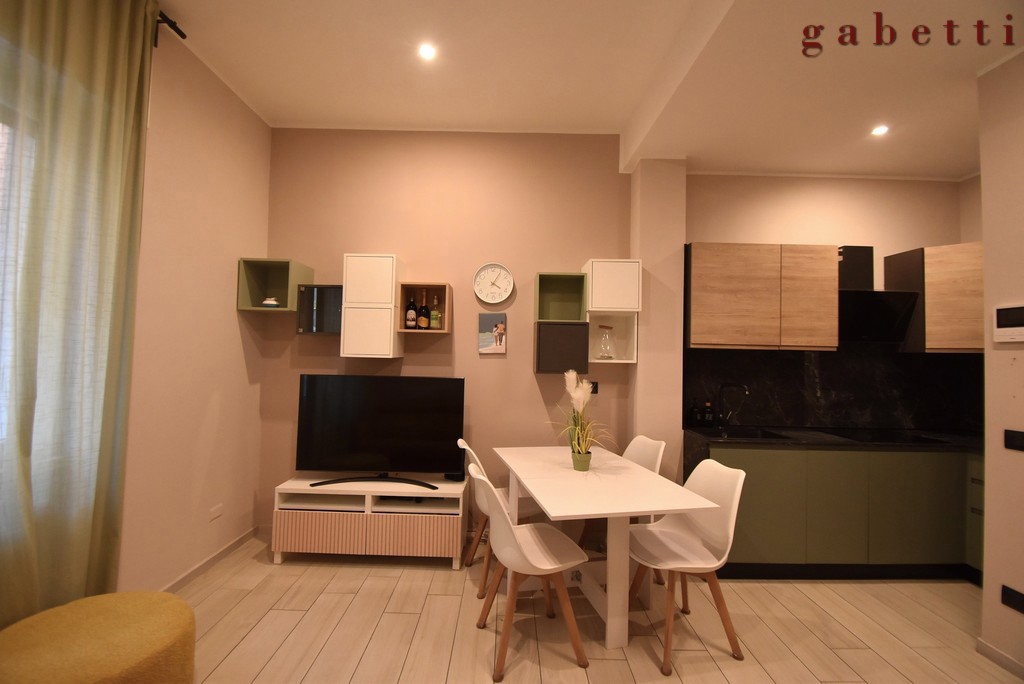 Un appartamento intimo e funzionale che ci apre le porte su un soggiorno con angolo cottura, organizzato in ogni suo spazio; un pratico disimpegno, arricchito da unampia armadiatura su misura, custodisce con discrezione anche lo spazio dedicato a lavatrice ed asciugatrice, un dettaglio che semplifica la quotidianit senza rinunciare alleleganza.