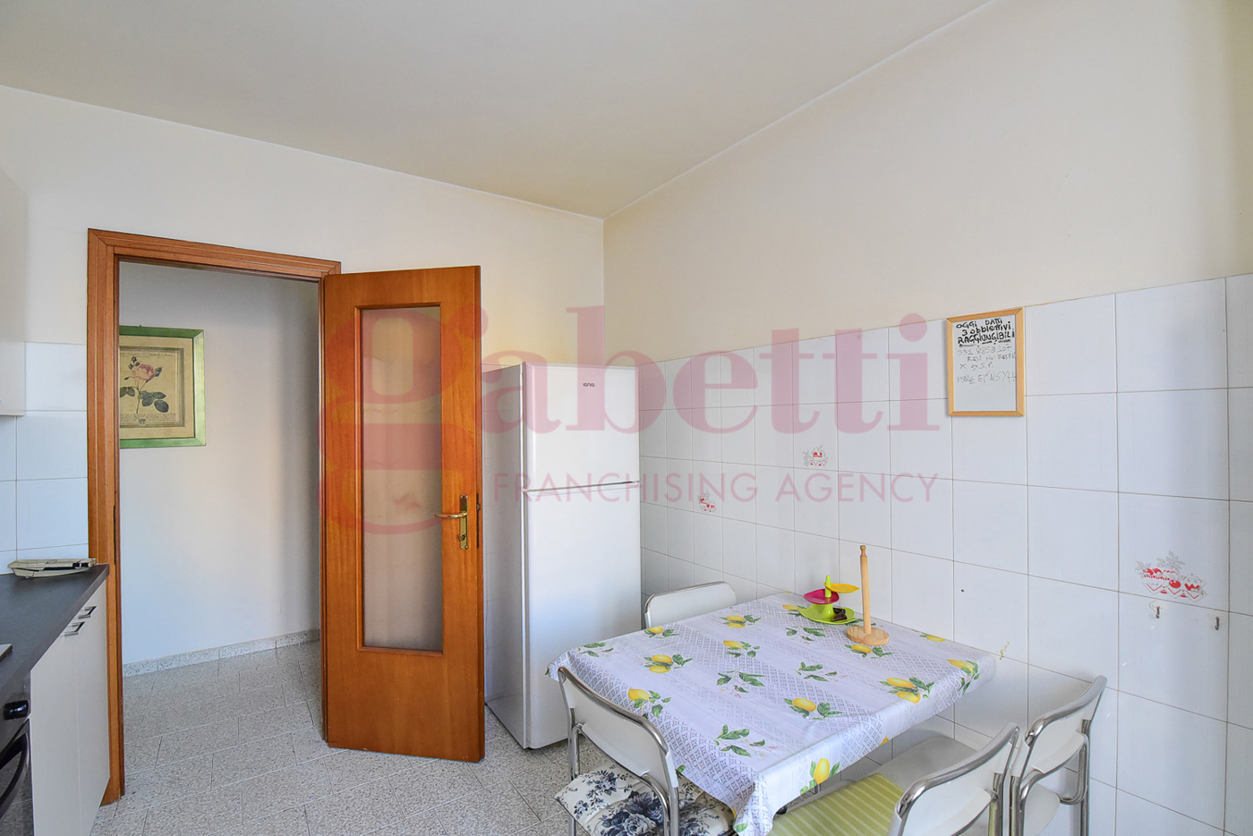 Lappartamento composto da ampio soggiorno, balcone, cucina abitabile, bagno completo di box doccia, disimpegno che conduce alla zona notte dove troviamo una camera da letto matrimoniale ed un bagno cieco utilizzabile anche come lavanderia.