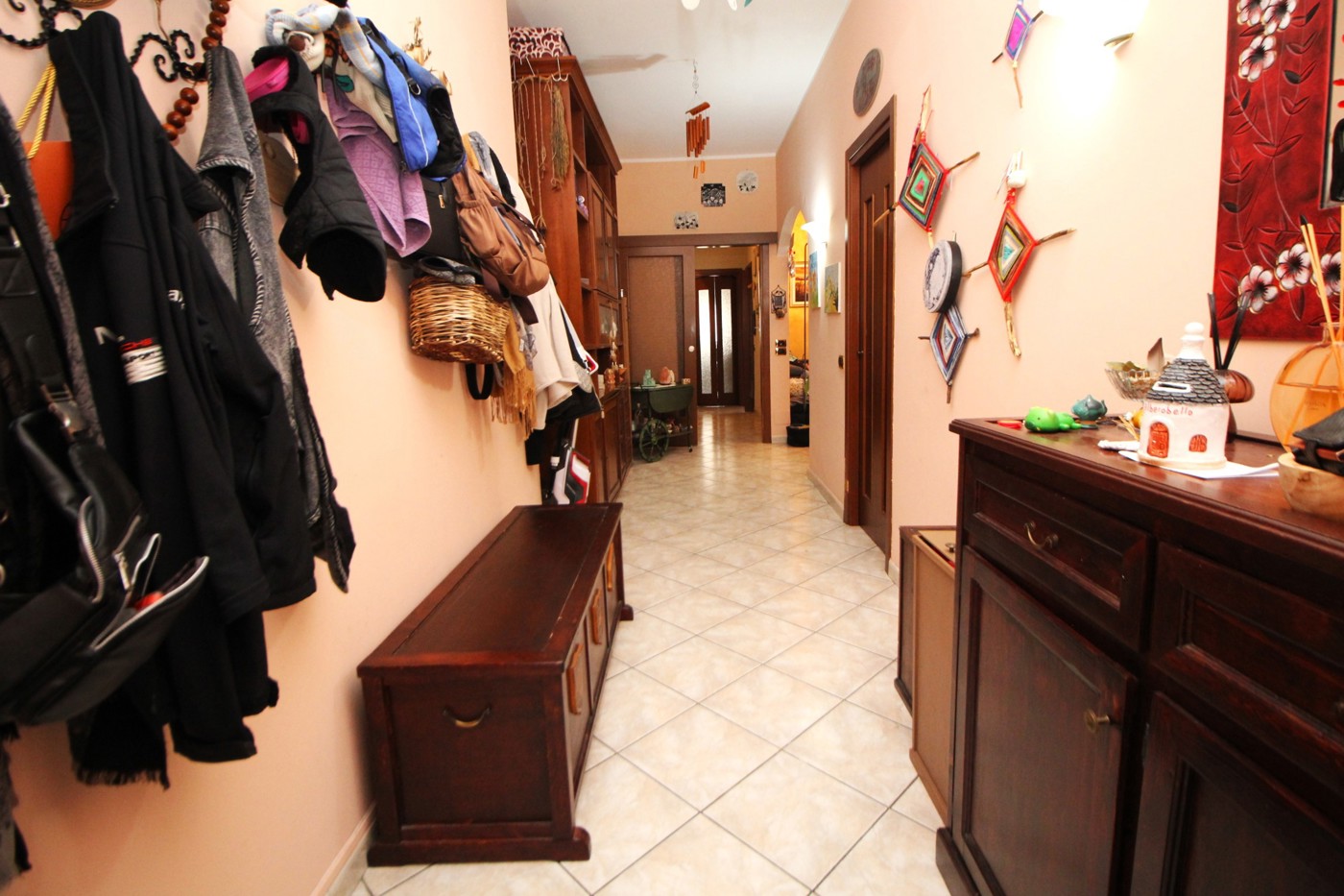 Lappartamento accoglie i propri ospiti con un ampio ingresso che conduce a una cucina abitabile spaziosa e funzionale.