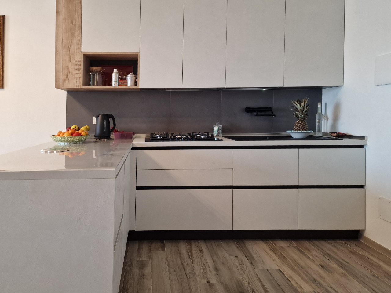 Si compone di ingresso su luminoso soggiorno con angolo cottura, disimpegno, camera matrimoniale, ampio bagno, ripostiglio e terrazzina "abitabile". Dotato di garage e venduto arredato con mobili nuovi.