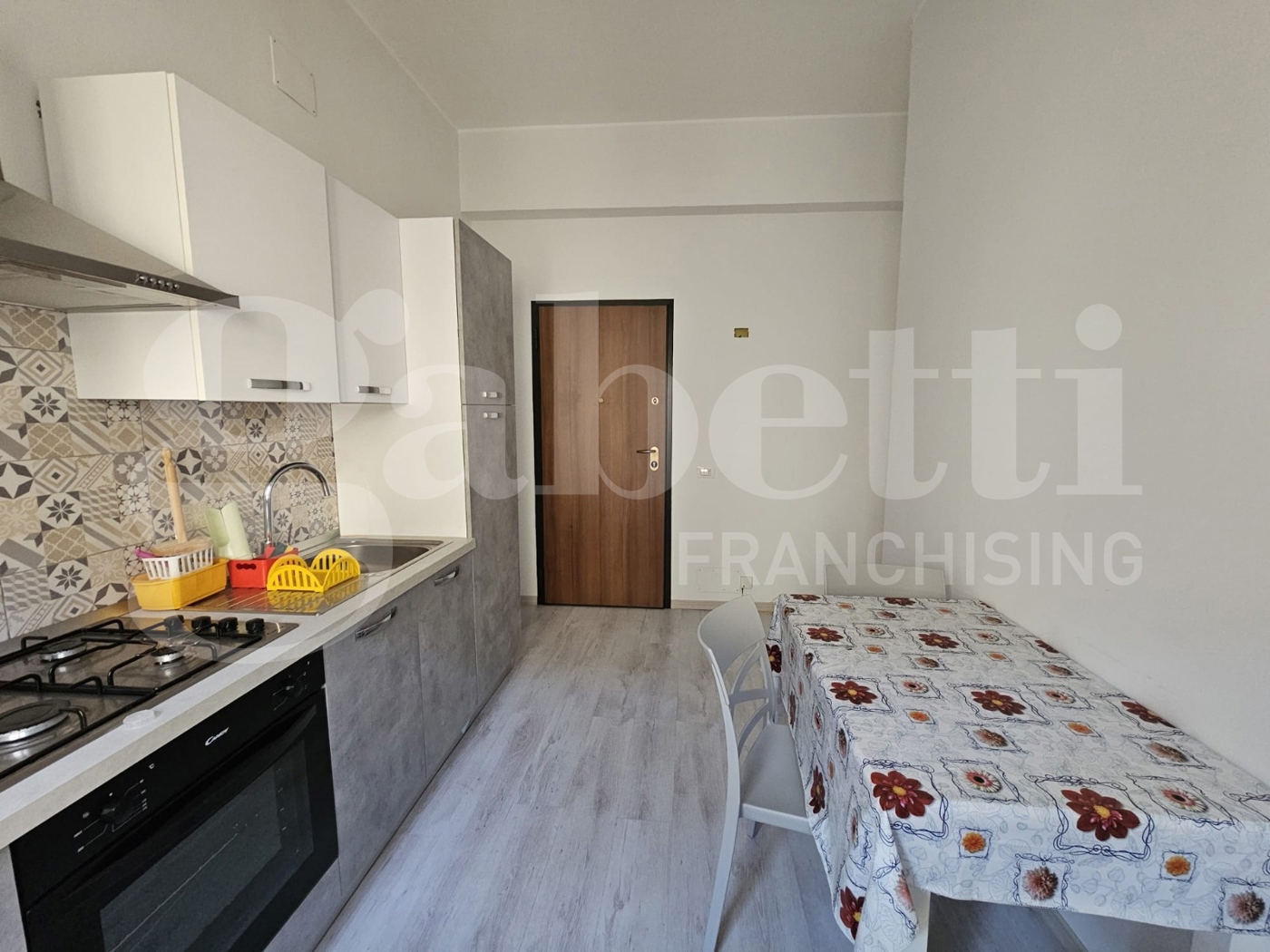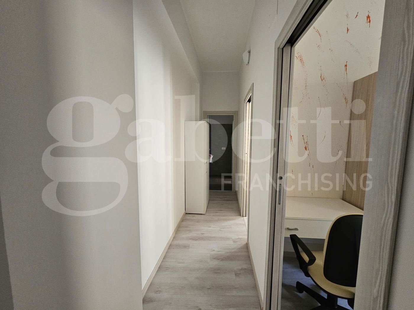 L'appartamento in buono stato e offre l'ingresso su una cucina abitabile; il corridoio disimpegna due camere da letto ed il bagno finestrato e con box doccia.