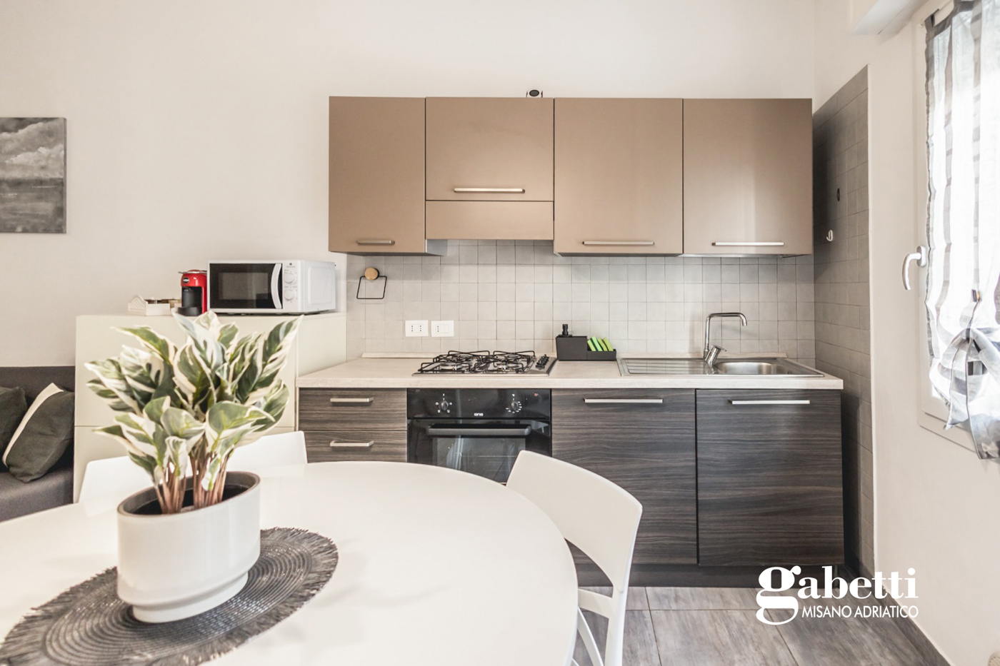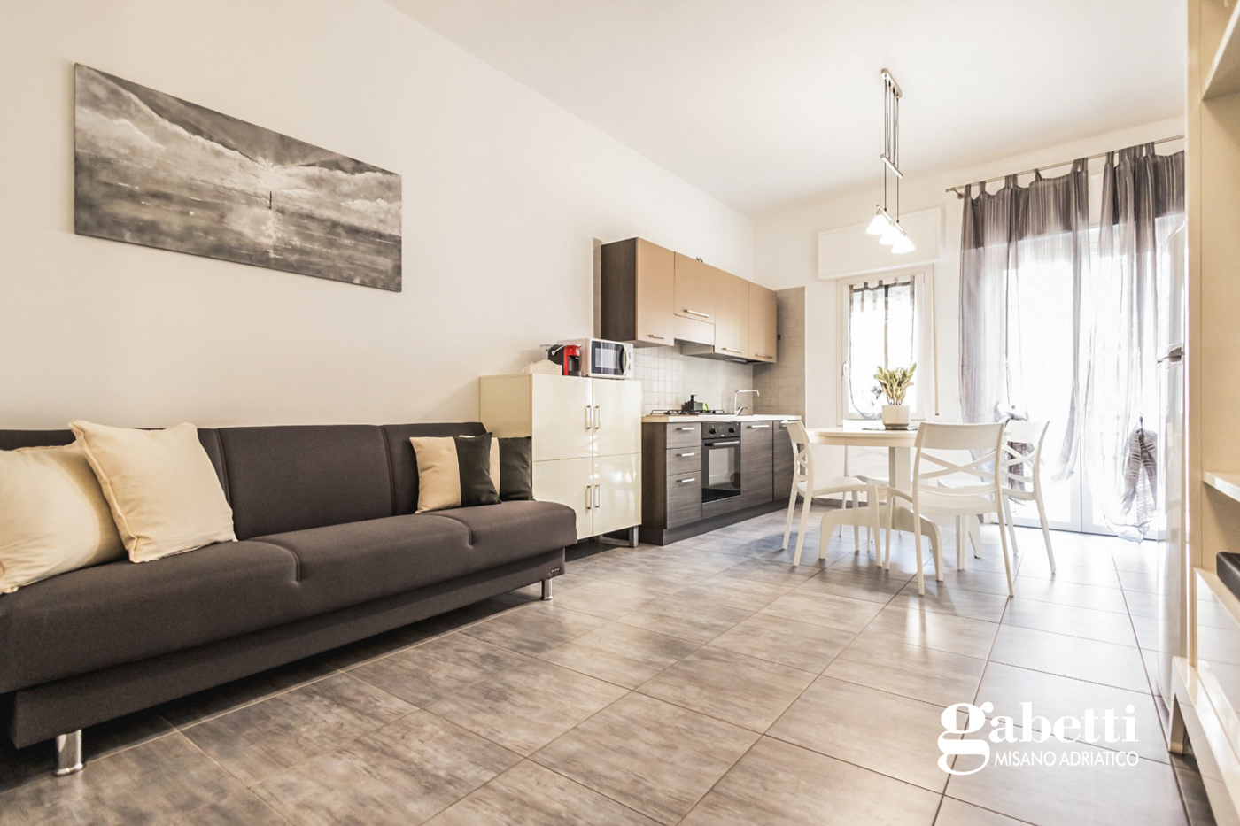 ESCLUSIVA! MISANO ADRIATICO - zona Misano Brasile Riferimento: MA051/1 In zona tranquilla a pochi passi dal mare, proponiamo in vendita un grazioso appartamento bilocale completamente ristrutturato e arredato.