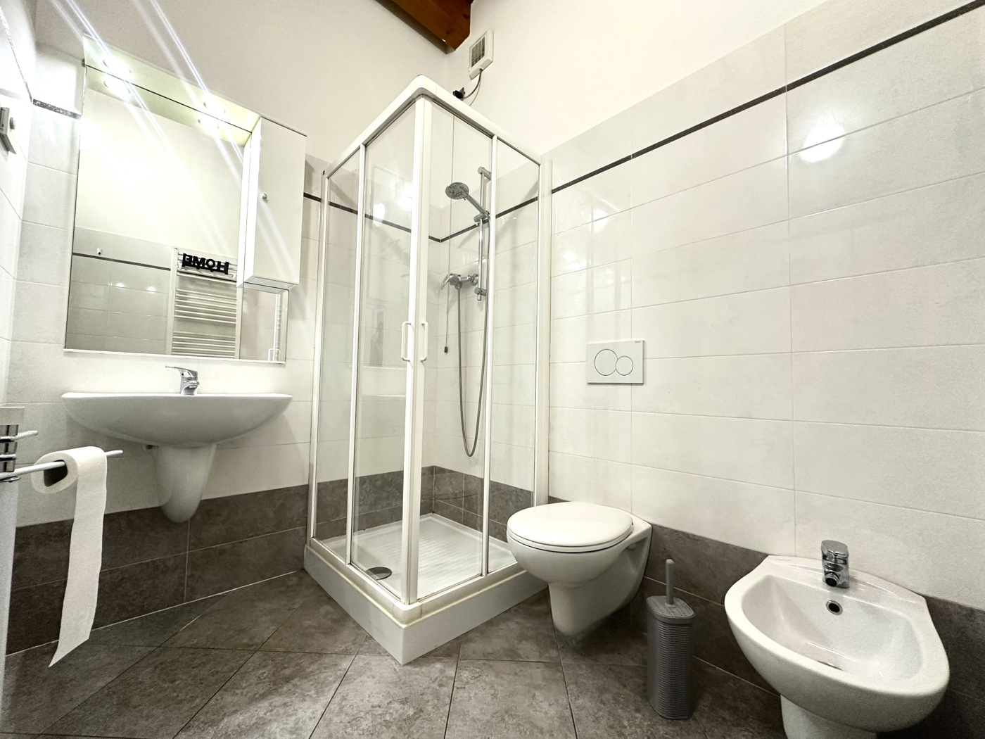 La zona notte comprende una camera da letto matrimoniale e un bagno finestrato completo di doccia.