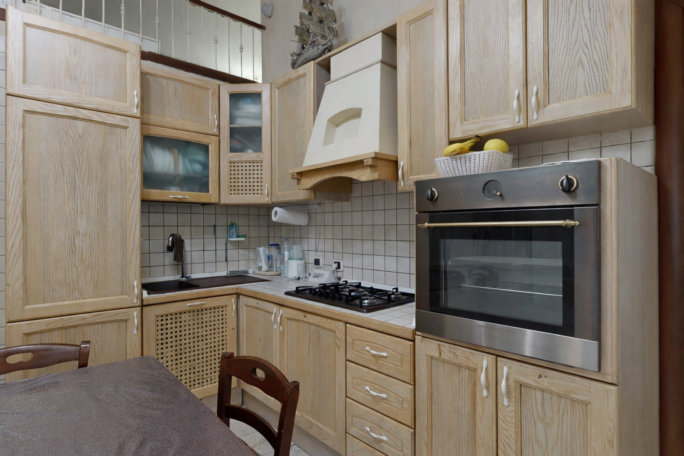 Lingresso conduce direttamente nella zona living con cucina, luminosa e finestrata.