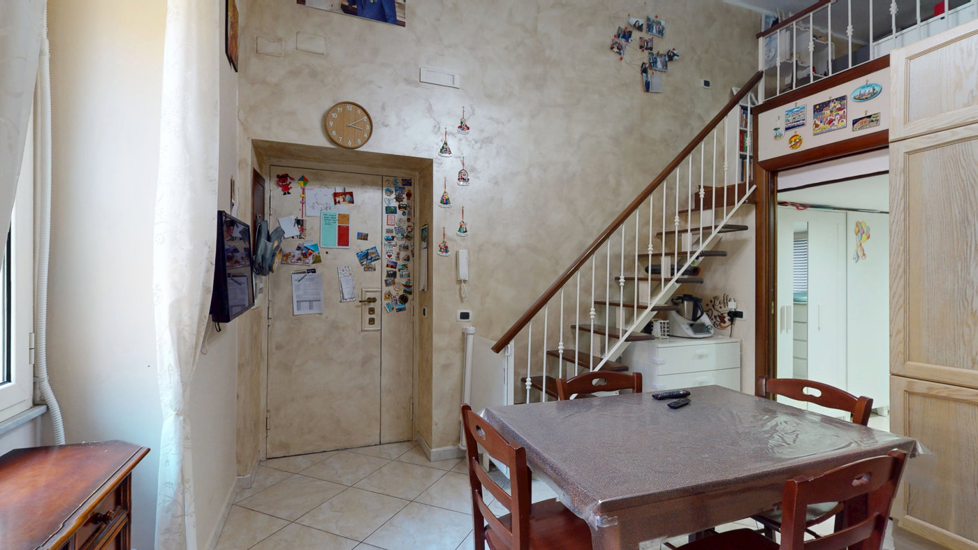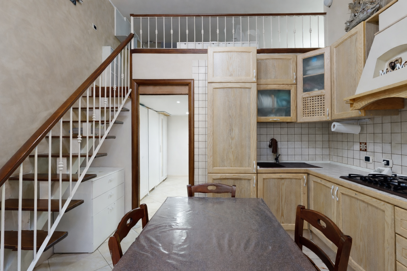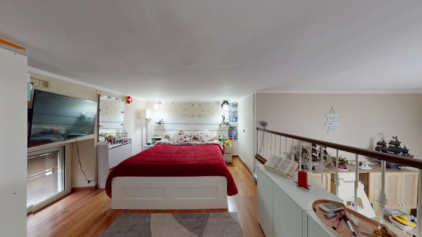 Dal living si accede a un soppalco di circa 23 mq, finestrato e attualmente utilizzato come zona notte.