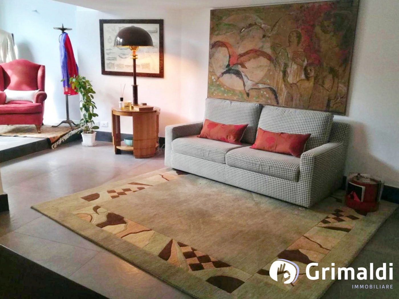 La zona giorno offre un soggiorno spazioso, ideale per momenti di relax o per accogliere ospiti in unatmosfera calda e conviviale.
