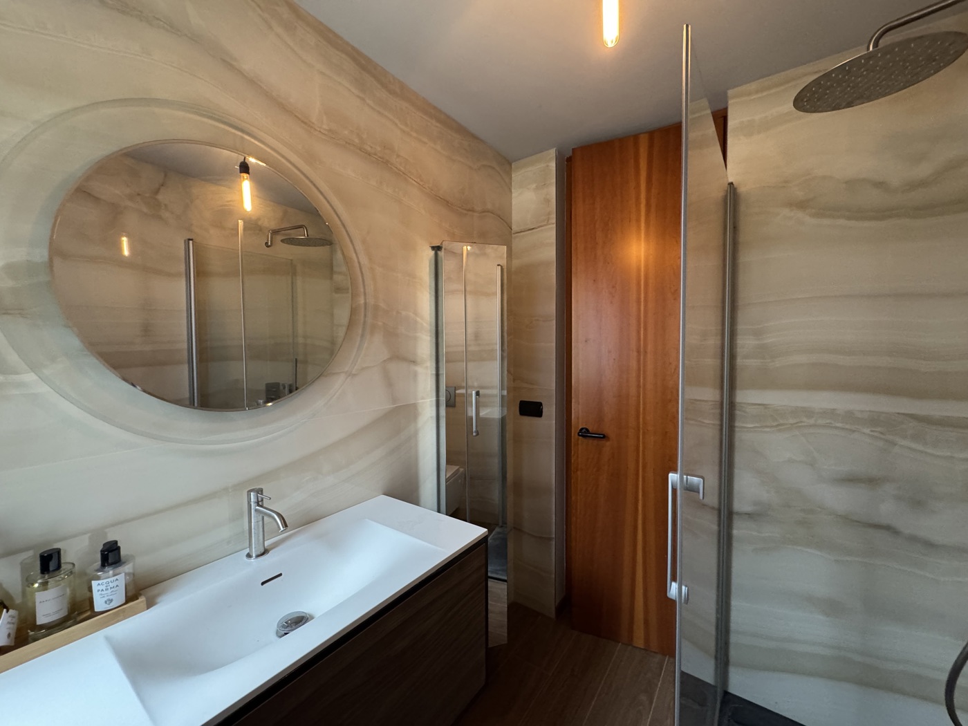 Una scala a chiocciola collega questo livello al piano superiore, dove si trova la camera da letto.