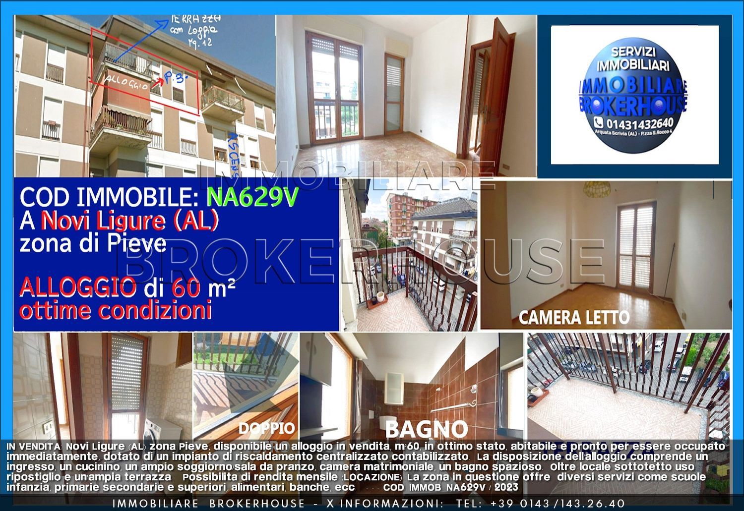 NA629V/2023 - A Novi Ligure (AL) zona Pieve/Merella, Via Don B. Dacatra, è disponibile un alloggio in vendita, m² 68 commerciali, in ottimo stato, abitabile e pronto per essere occupato immediatamente.
