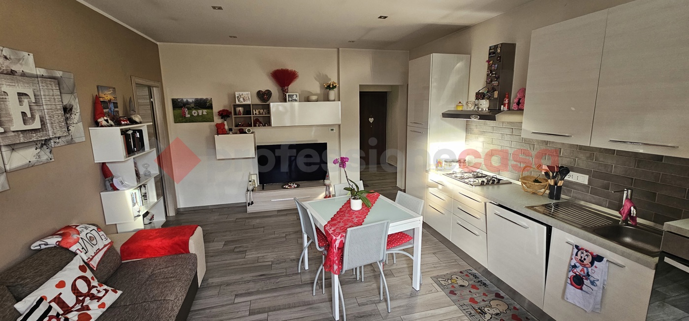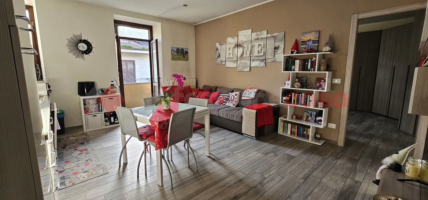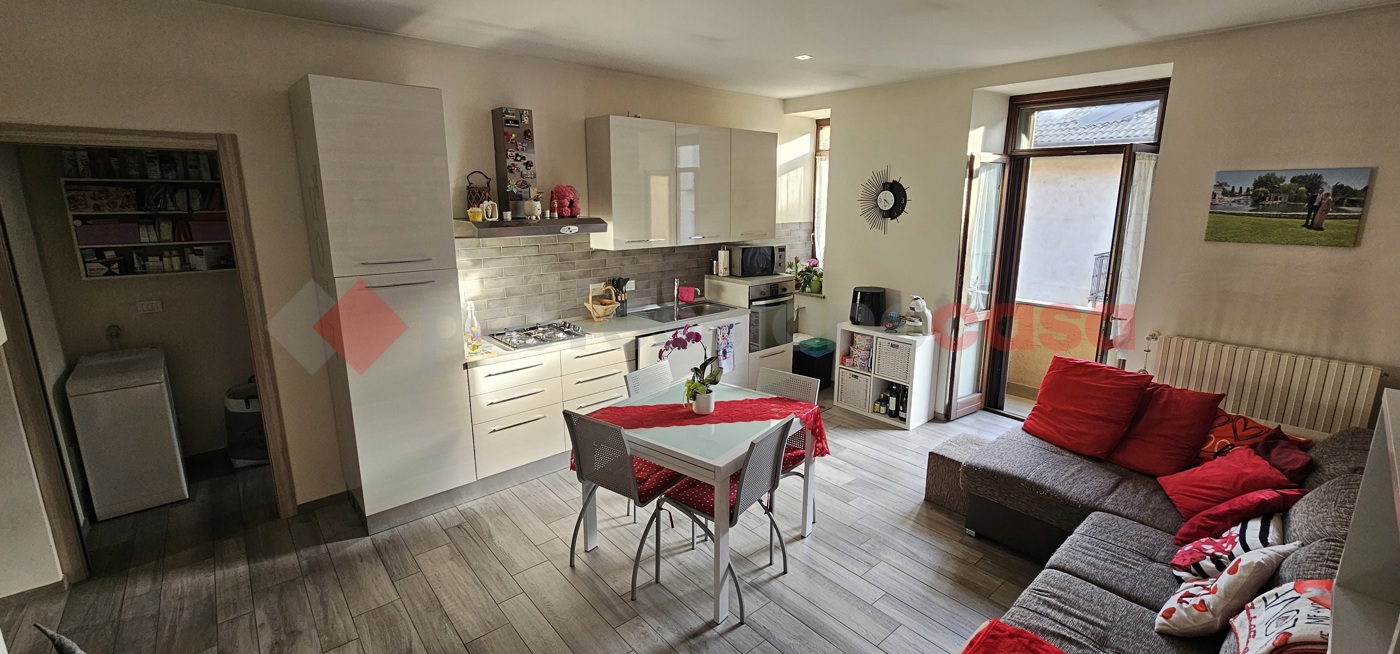 L'alloggio, posto al piano primo, si sviluppa con ingresso su comodo e pratico disimpegno, dotato di armadiature a muro, soggiorno con cucina a vista, una camera da letto di generose dimensioni e un bagno finestrato con doccia.