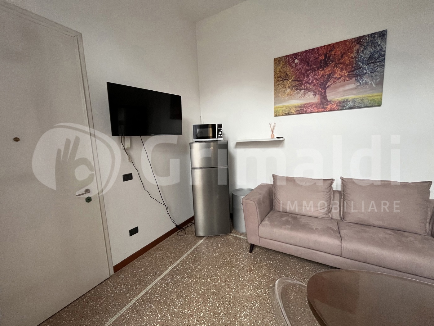 Lingresso si apre su un luminoso soggiorno con angolo cottura a vista servito da un piccolo terrazzo; la zona notte composta da disimpegno, camera matrimoniale e bagno finestrato con doccia.