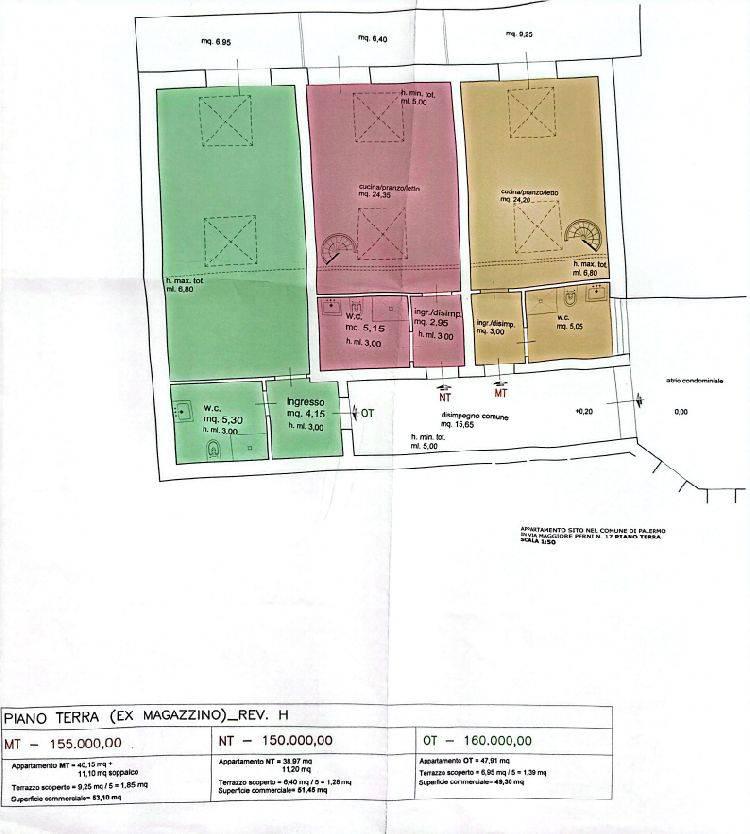 Inoltre, la prossimit con importanti strutture come l'Ospedale Civico e il Policlinico, l'Universit degli Studi di Palermo e il Parco d'Orleans garantisce un perfetto equilibrio tra comodit e qualit della vita. La zona ben servita da mezzi pubblici e facilmente collegata alle principali arterie stradali della citt. Caratteristiche Principali: Il piano terra, suddiviso in 3 unit abitative, ciascuna caratterizzata da metrature differenti e spazi ben ottimizzati: Appartamento OT: 49,30 mq commerciali Appartamento NT: 51,45 mq commerciali Appartamento MT: 53,10 mq commerciali Punti di Forza: Spazi Esterni: Alcuni appartamenti dispongono di terrazzi o balconi, ideali per godersi momenti all'aperto.