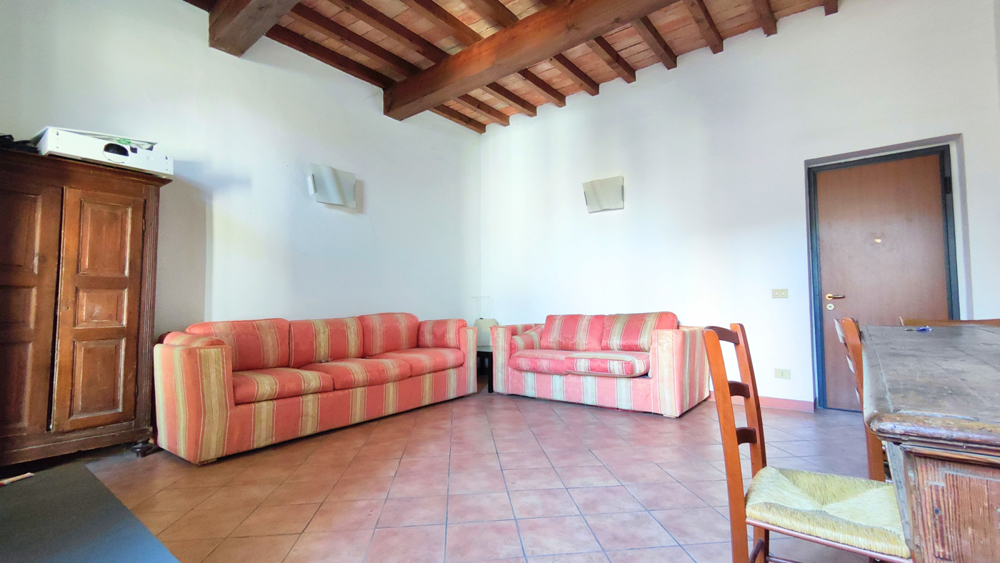 Lappartamento composto da un ampio soggiorno con travi a vista, cucina separata con accesso al terrazzo, spaziosa camera matrimoniale, bagno finestrato e cantina.