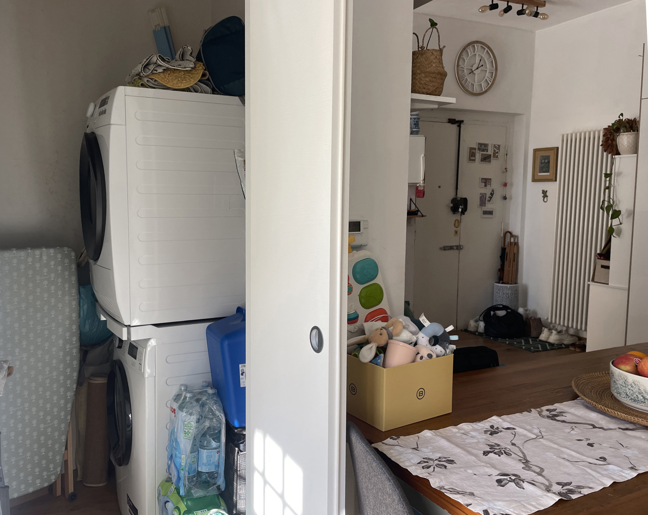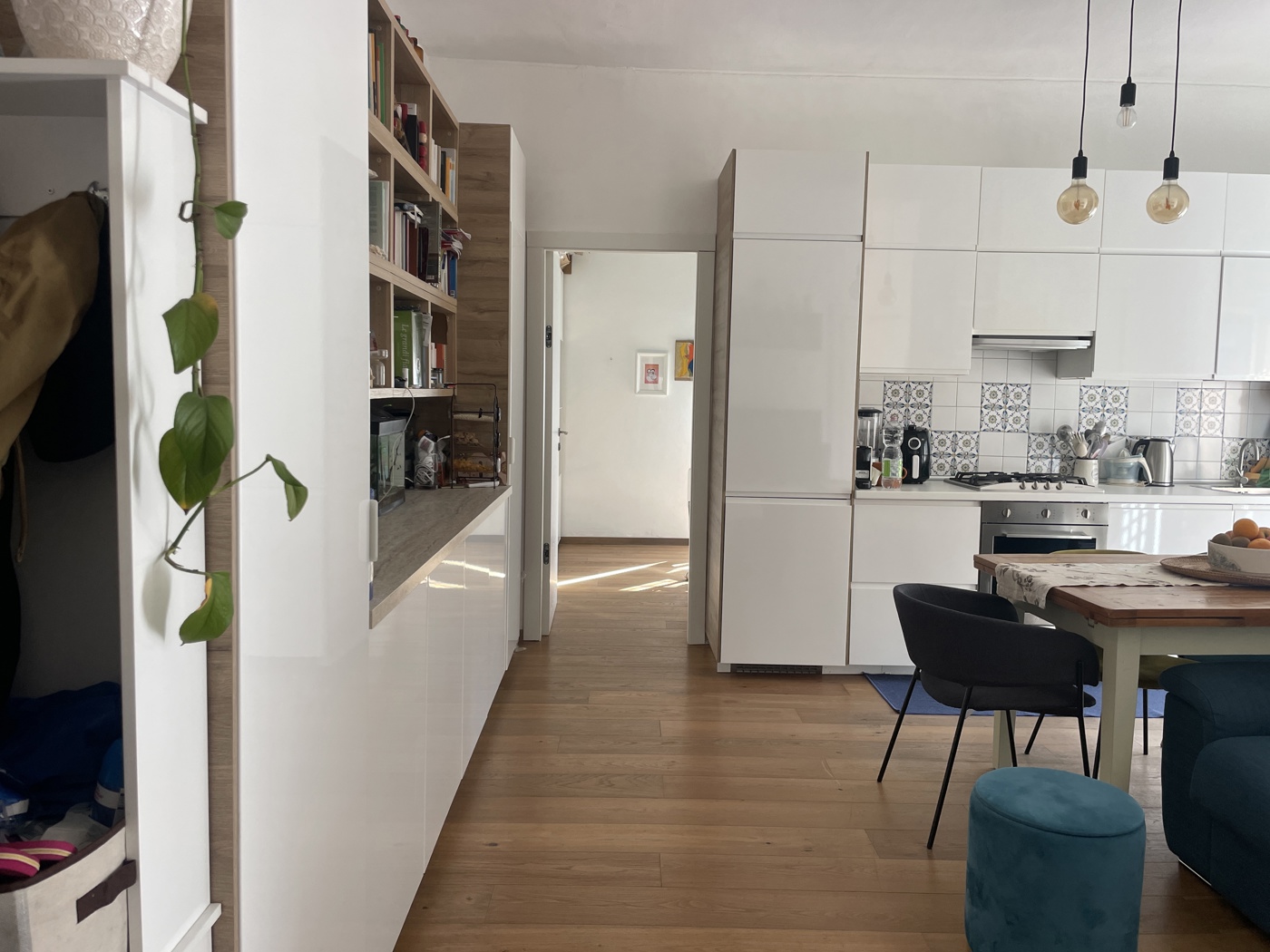 L'immobile cos composto: ingresso diretto nella zona giorno con angolo cottura, dalla zona cucina si accede al ripostiglio/lavanderia dotato di porta insonorizzata e al primo balcone abitabile, la zona giorno risulta essere molto luminosa grazie alla buona esposizione e alle due porte finestre che collegano l'intero ambiente al balcone, dal corridoio adiacente all'ingresso si accede all'ampio bagno completo di tutti i sanitari e finestrato; dal soggiorno si raggiunge l'ampia camera da letto matrimoniale con balcone esclusivo.