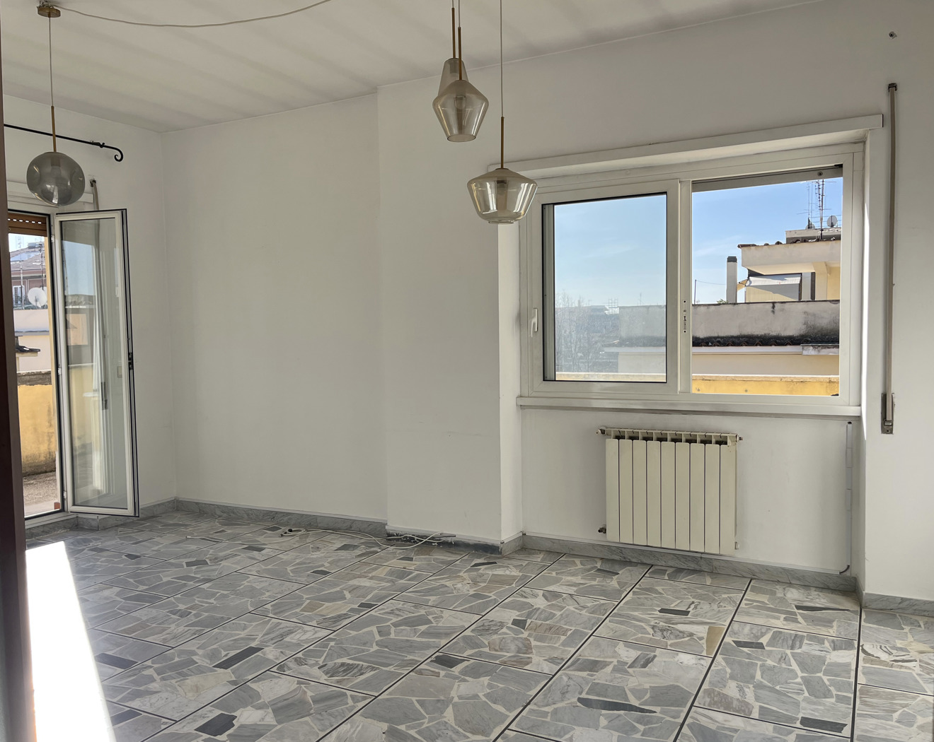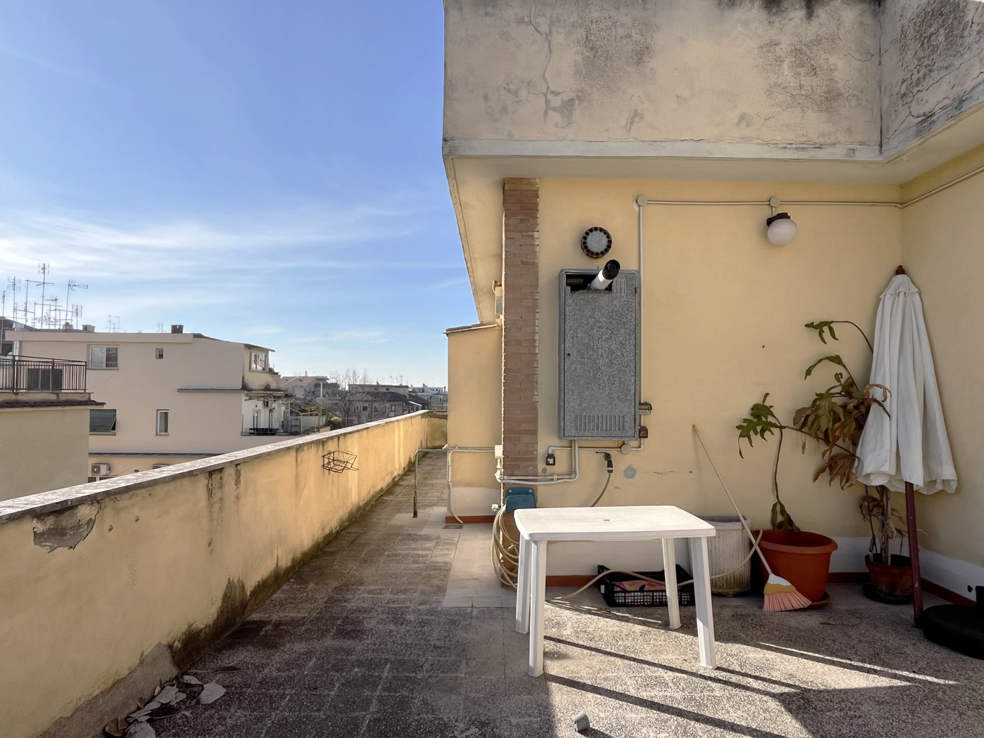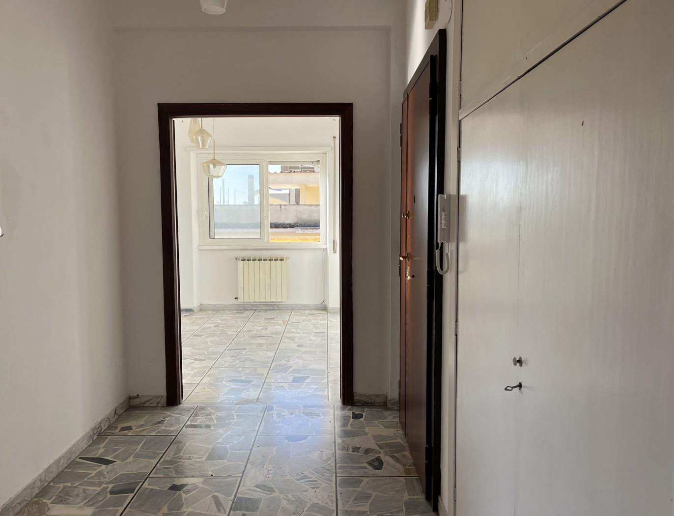 L'immobile, di circa 75 mq di casa e circa 50 mq di terrazzo, gode di una tripla esposizione che rende l'immobile luminoso nell'arco di tutta la giornata ed internamente cos composto: ampio ingresso con armadio a muro, salone doppio con accesso al terrazzo perimetrale che percorre tutti e tre i lati della casa, cucina abitabile, disimpegno con ampio ripostiglio, camera da letto matrimoniale ed un bagno.
