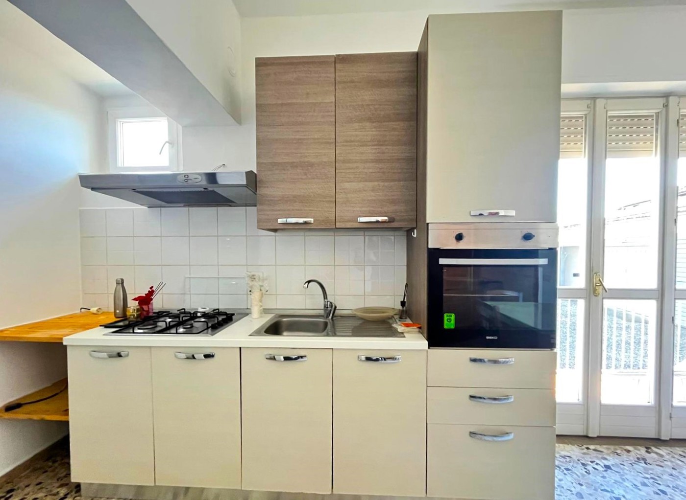 Corso Roma, appartamento sito al piano rialzato e composto da ingresso in disimpegno, cucina abitabile, camera da letto, bagno, balcone e cantina.