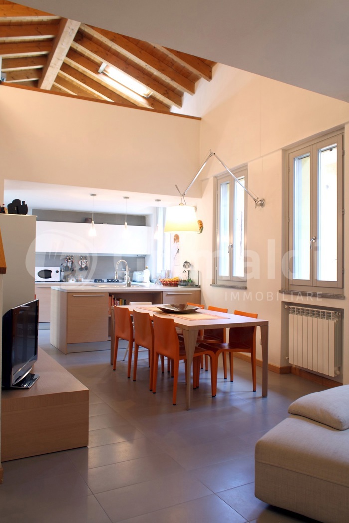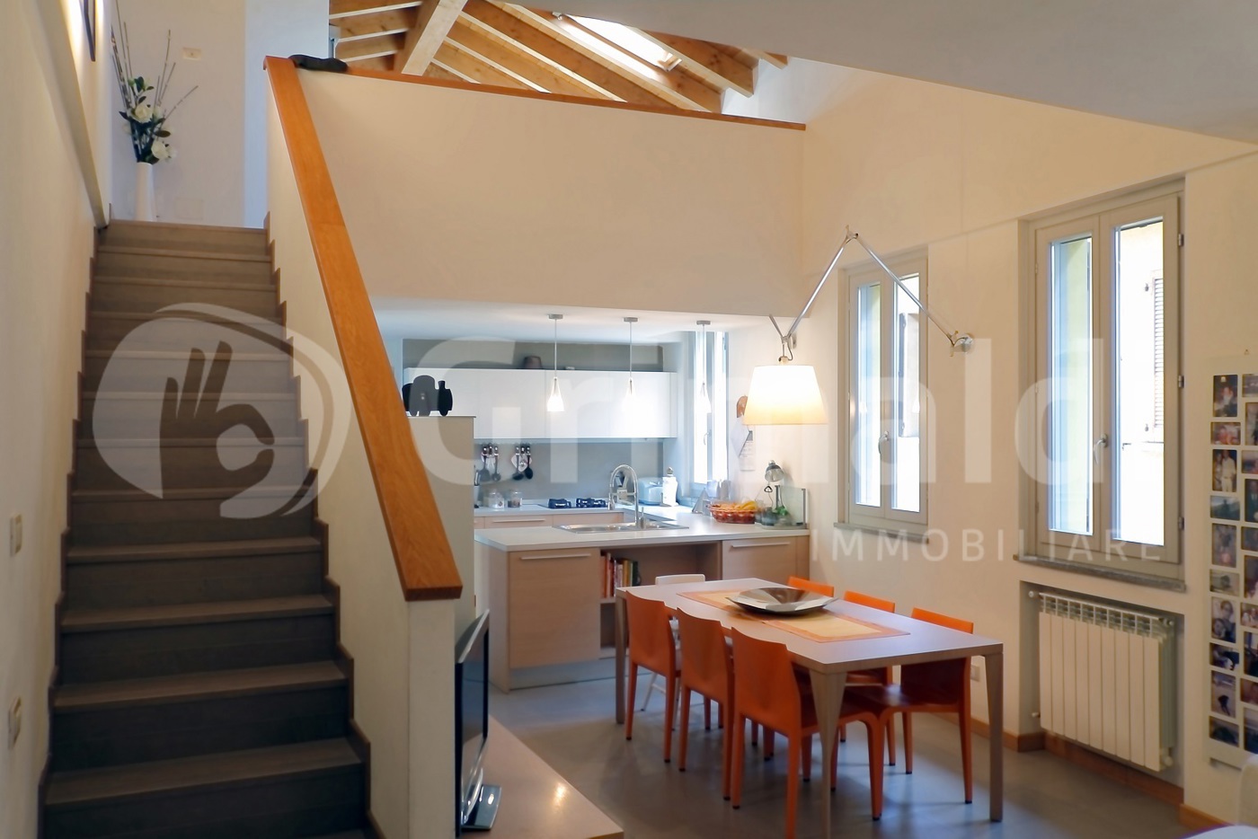 Si tratta di un'abitazione in cui ogni elemento, dall'architettura interna all'arredamento, stato curato nei minimi dettagli per creare un ambiente unico, funzionale ed esteticamente gradevole ... e questa e' l'identit di questo meraviglioso appartamento ! Unico appartamento di design ad uso abitativo al piano 1 di un piccolo edificio di 4 unit, adiacente alle banche della Piazza Caduti e via Umberto I, nel cuore di Sant'Angelo Lodigiano (LO). Con una superficie di 75 mq, questa unit abitativa, funzionale e affascinante in ogni particolare (dai punti ed effetti di luce naturali ed artificiali, ai materiali scelti, dalla disposizione degli spazi per pi funzionalit agli arredi di pregio), stata ideata, realizzata e arredata con gusto da un architetto sant' angiolino, questo fa si che tenda a mantenere o addirittura aumentare il suo valore nel tempo e quindi renderla un ottimo investimento!! Entrando nell' appartamento la vista ad impatto coglie la copertura a due falde in legno con travi a vista e i due livelli distributivi: al piano living, le tre zone -salotto -pranzo (8 posti) e cucina con penisola che si illumina con la finestra e il balcone prospicente oltre al lungo bagno con doccia in rivestimento Bisazza e il locale sottoscala multifunzionale: lavanderia guardaroba dispensa.