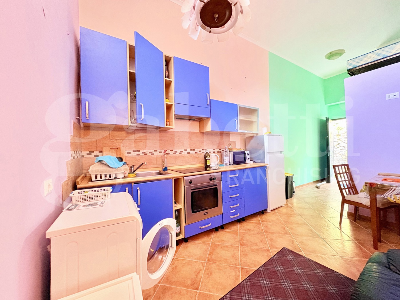 L'interno caratterizzato da un soppalco che aggiunge un tocco di originalit e funzionalit allo spazio abitativo.