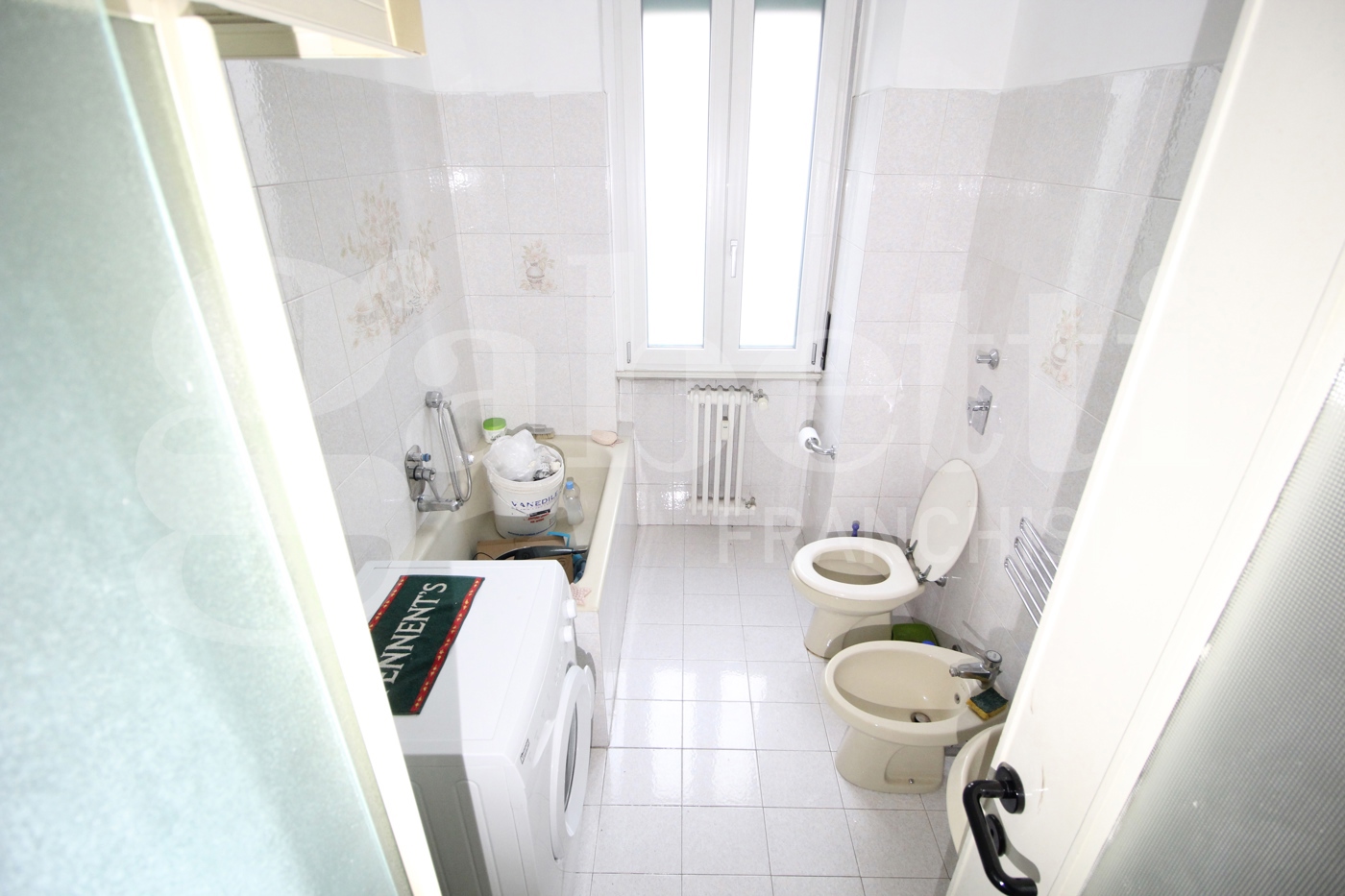 La soluzione composta da ingresso in disimpegno che divide gli ambienti con cucina semi a vista completa di elettrodomestici, la sala affaccia su un balcone lato via Torino.