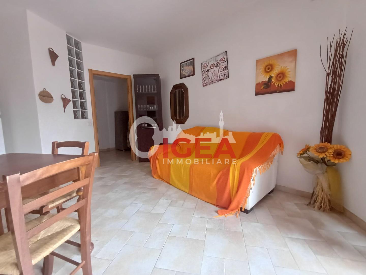 Si accede all' appartamento al piano terra, tramite cancellino ad un resede privato e pavimentato, internamente ha un grande zona giorno con angolo cottura, un bagno con doccia e una bella camera matrimoniale dal quale si accede al giardino privato e recintato, è presente anche un piccolo loggiato dove riporre gli oggetti.