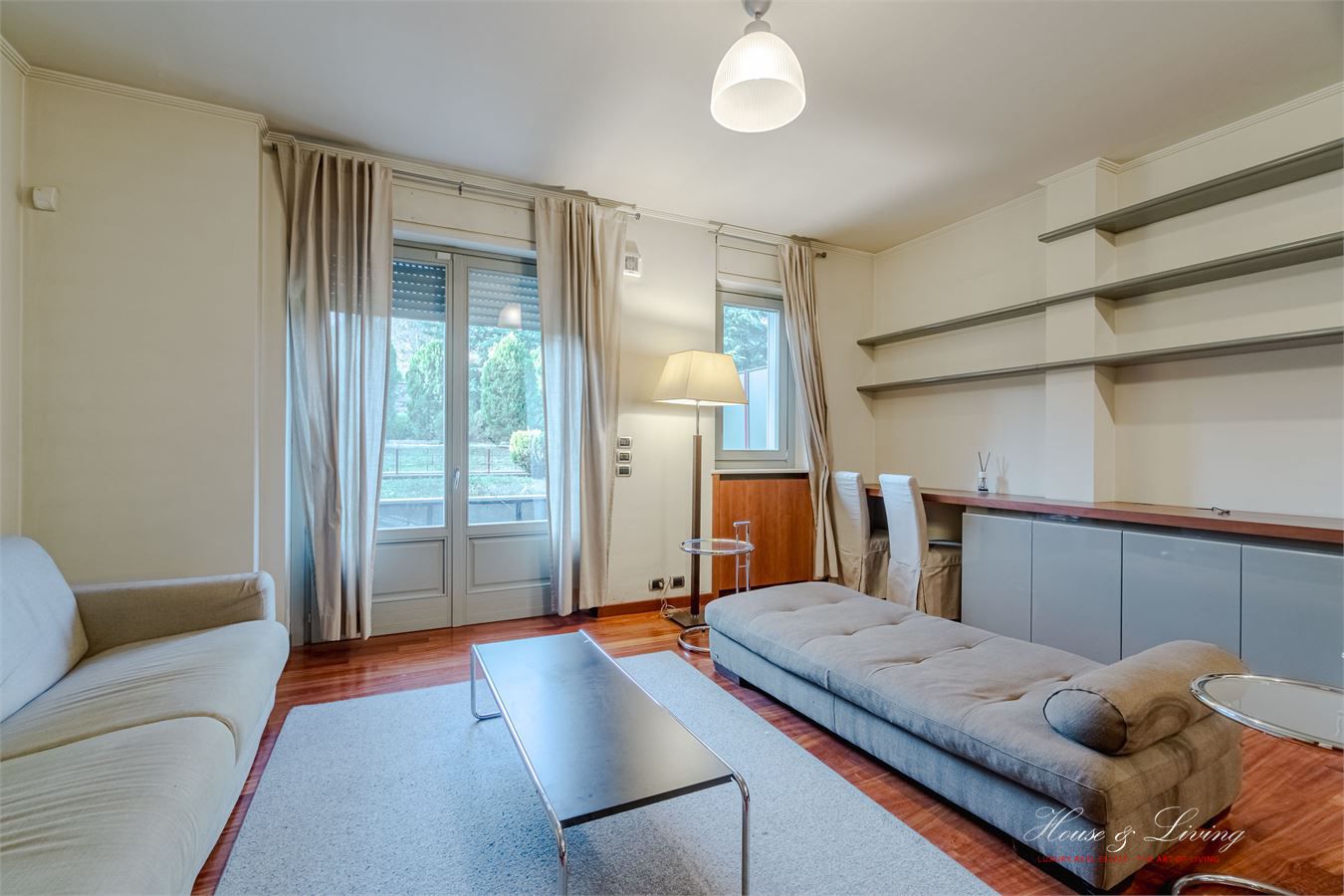 \nIl terrazzo - giardino privato di 60mq completano l'appartamento, immerso in un contesto di assoluta tranquillità, prestigio e riservatezza nel verde dei giardini circostanti, esposizione Sud-Sud-Ovest.