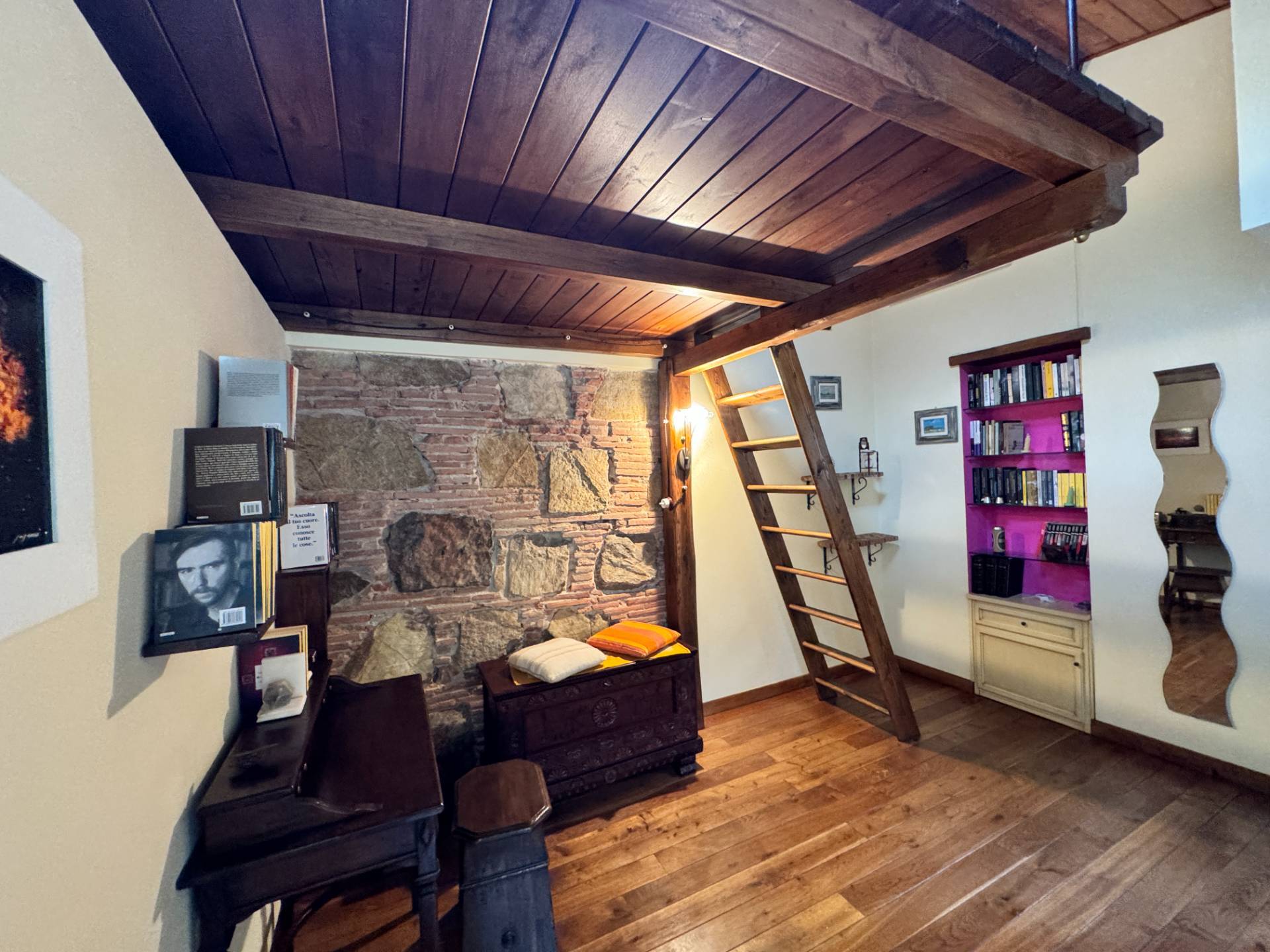 L'immobile è composto dalla zona giorno con angolo cottura, una scala a chiocciola ci accompagna al piano superiore dove troviamo la zona notte composta da una camera da letto matrimoniale con soppalco, un balcone verandato e il bagno, con doccia e finestra.